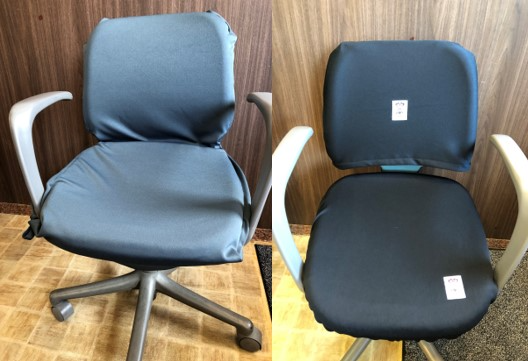 布製品は、事務椅子カバーに関しては受注製作です。個別のサイズに合わせてオーダーメイドでお作りいたします。