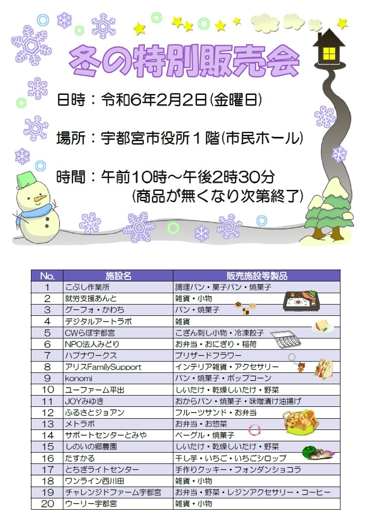 「冬の特別販売会」のお知らせ