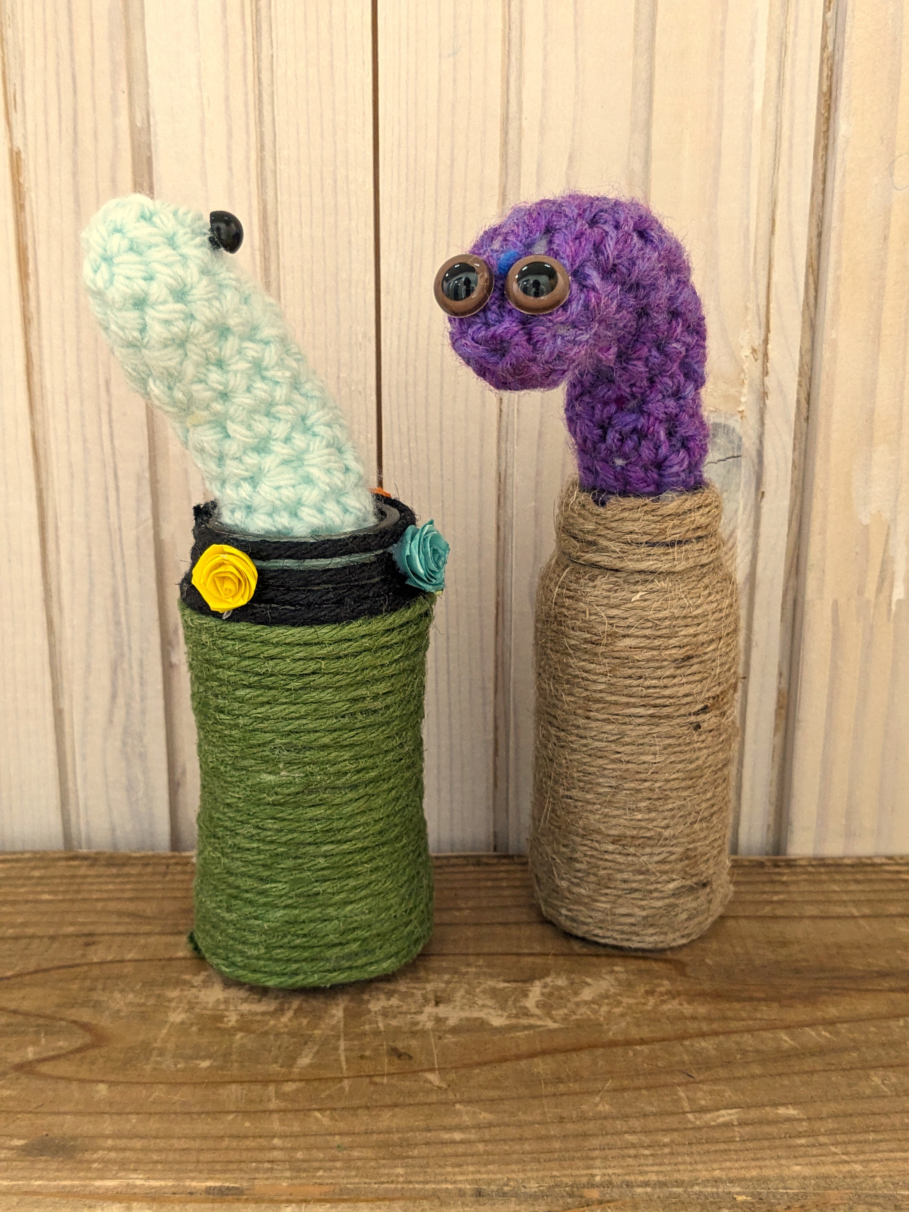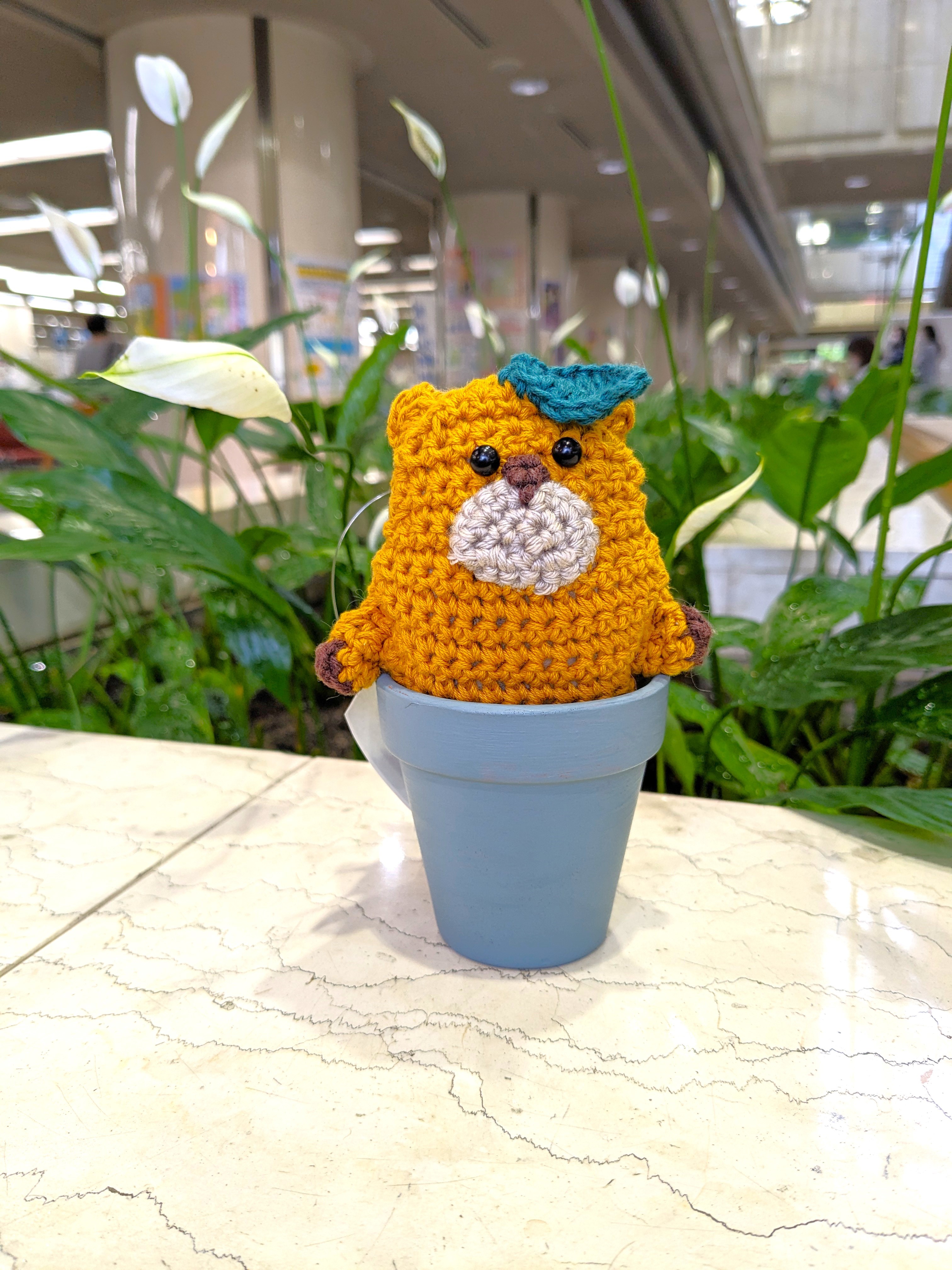砂浜から顔出す様子を編みぐるみで作りました。