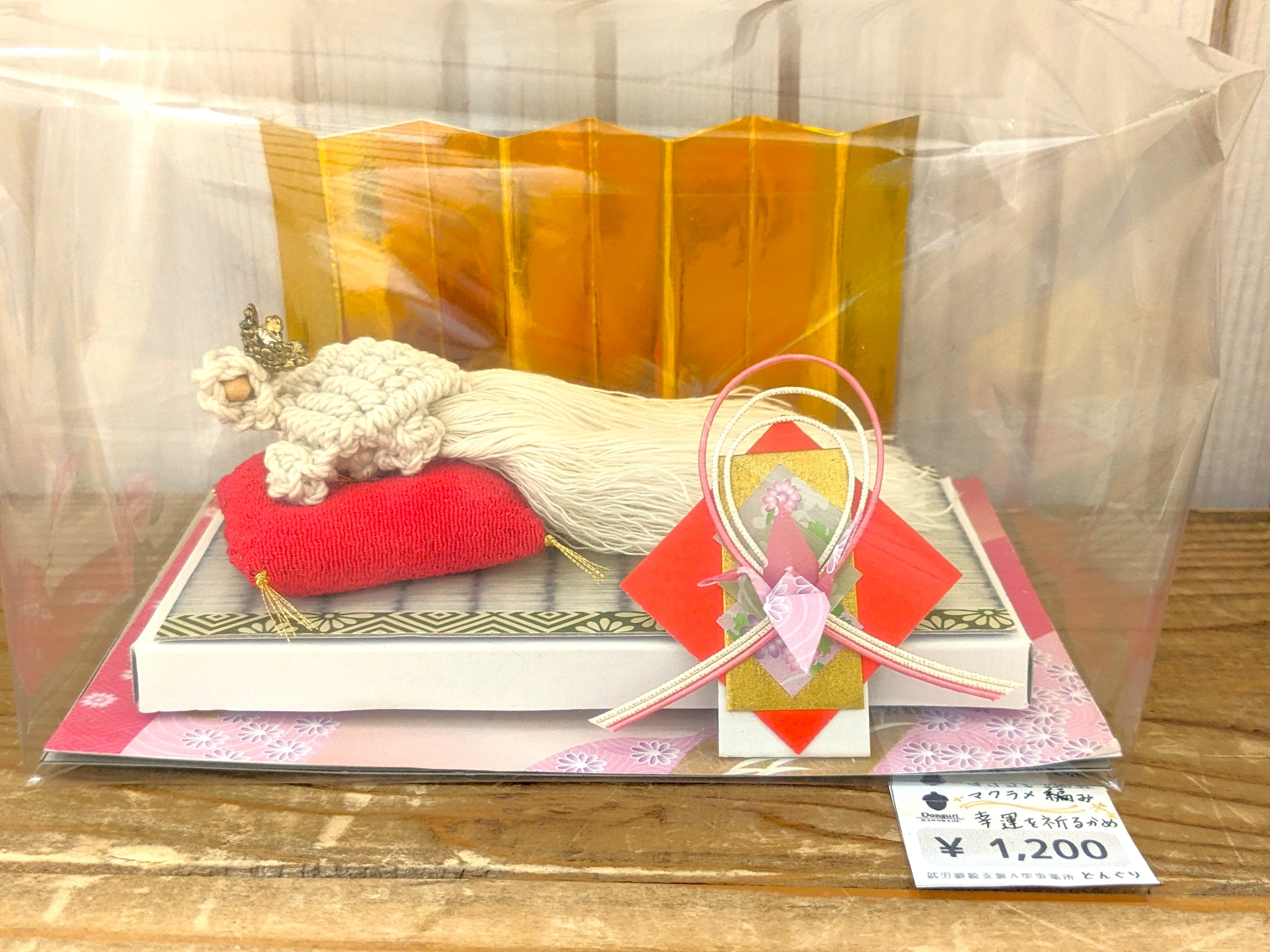 幸運を祈る亀が鎮座している置き物です。