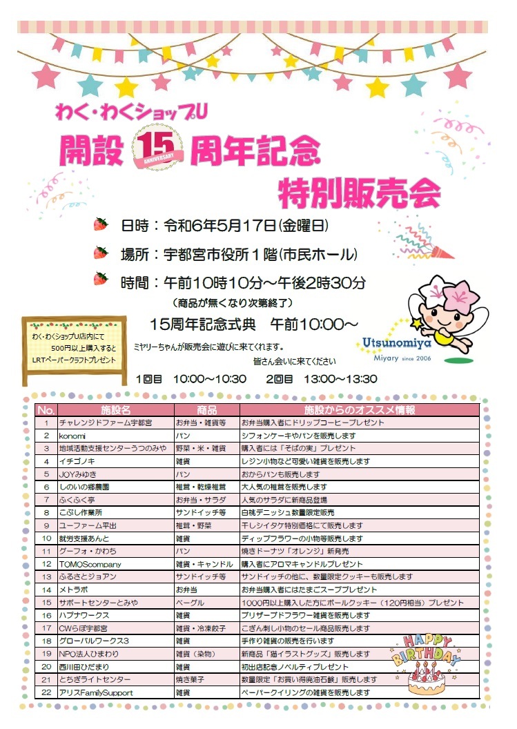 - 障がい者支援施設等製品販売所 『わく・わくショップU』について