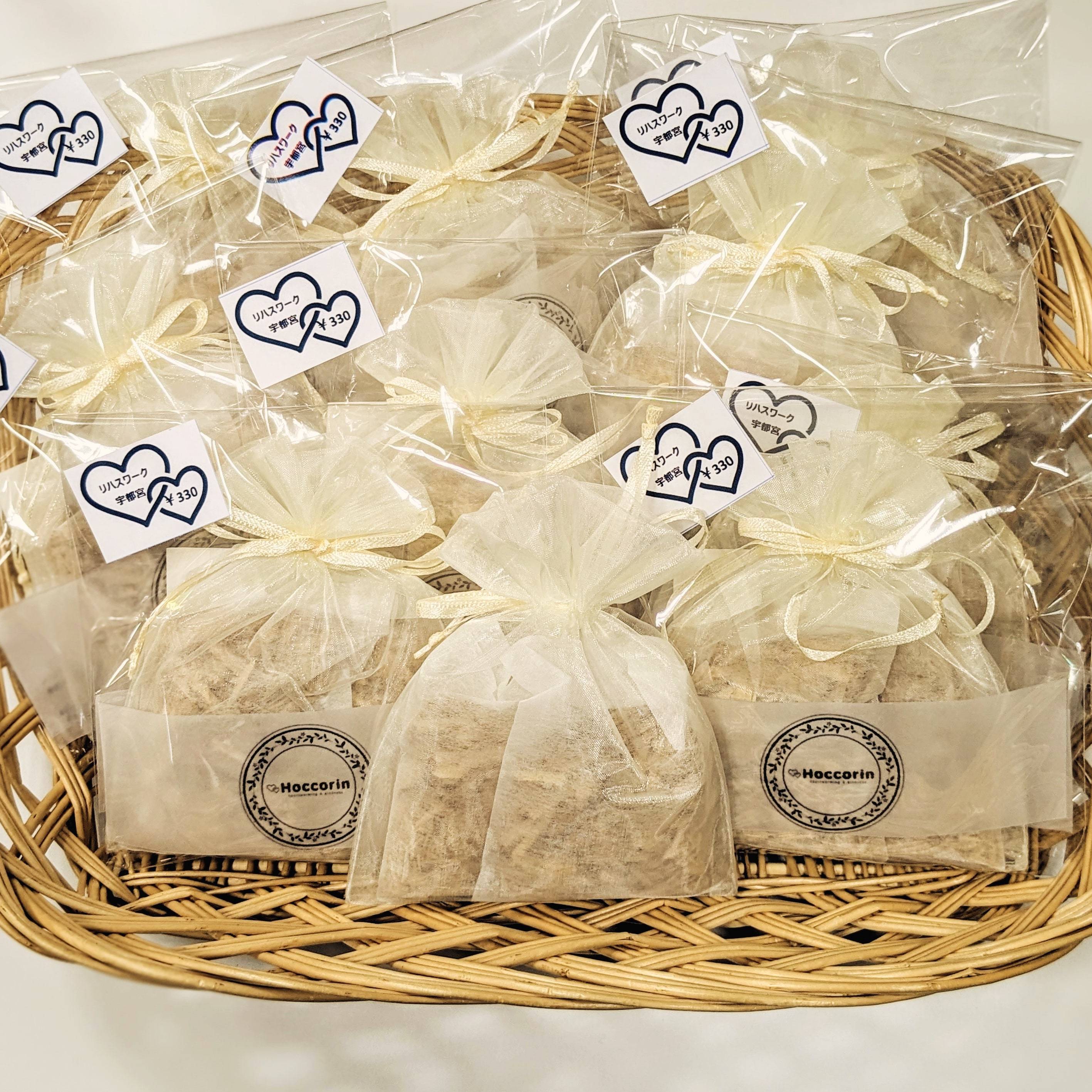 - 手提げバッグ,コースター,石鹸等の障がい者支援施設において製作された日用品