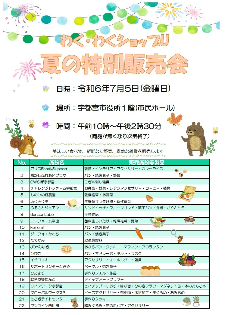 「わく・わくショップU 夏の特別販売会」のお知らせ
