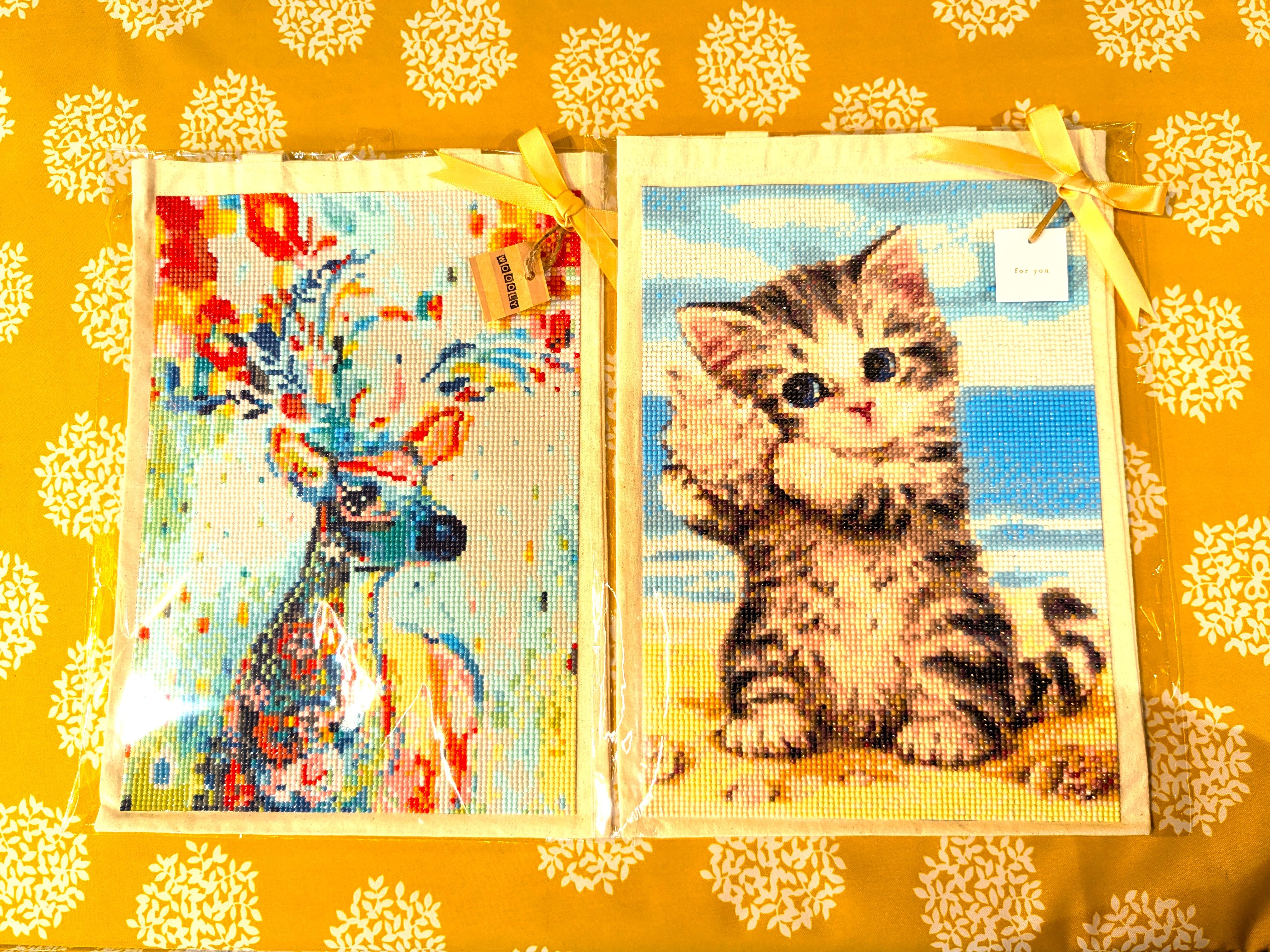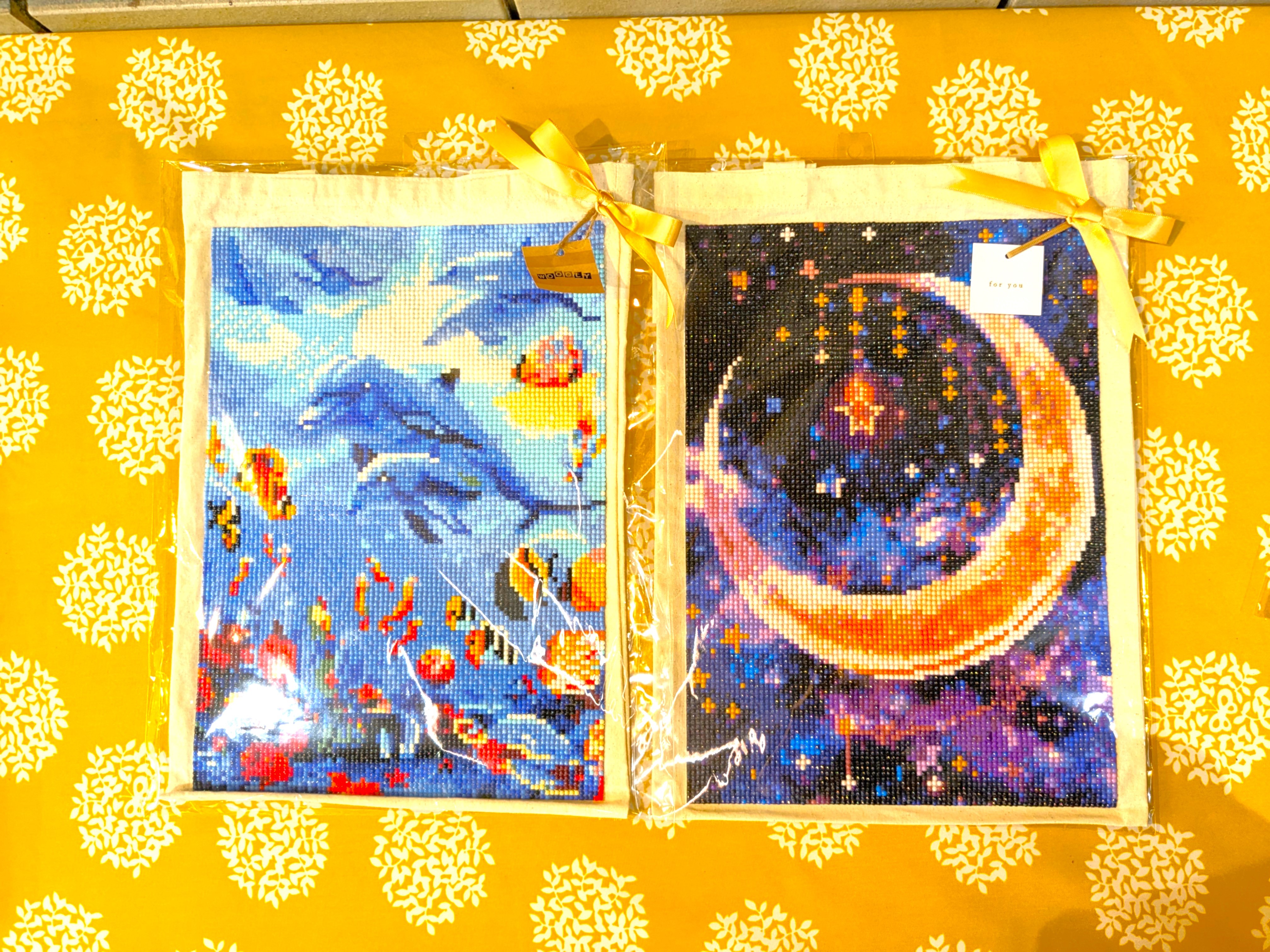 トートバッグにダイヤモンドアートで素敵な絵を書きました。