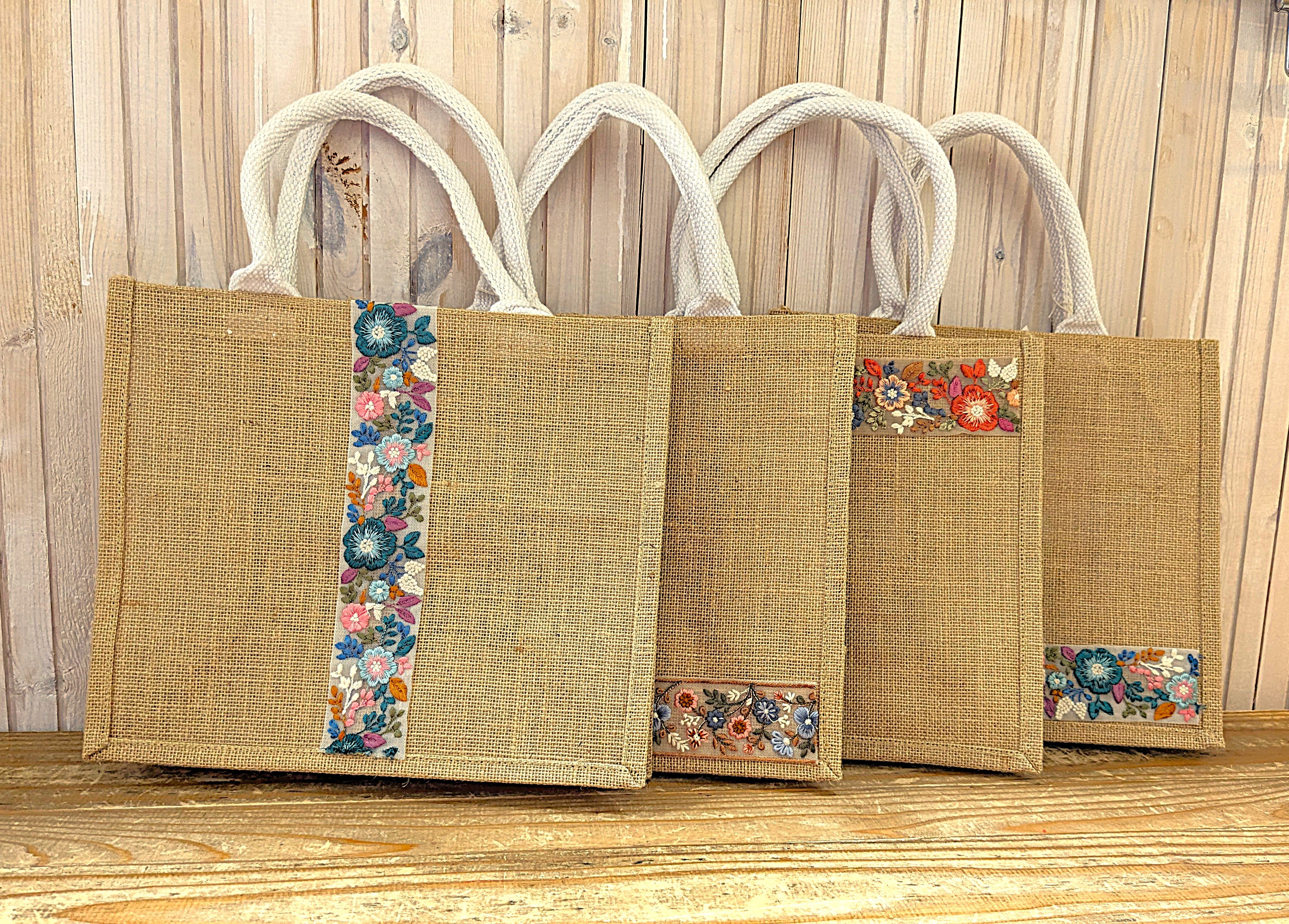インドリボンをあしらった麻バッグです