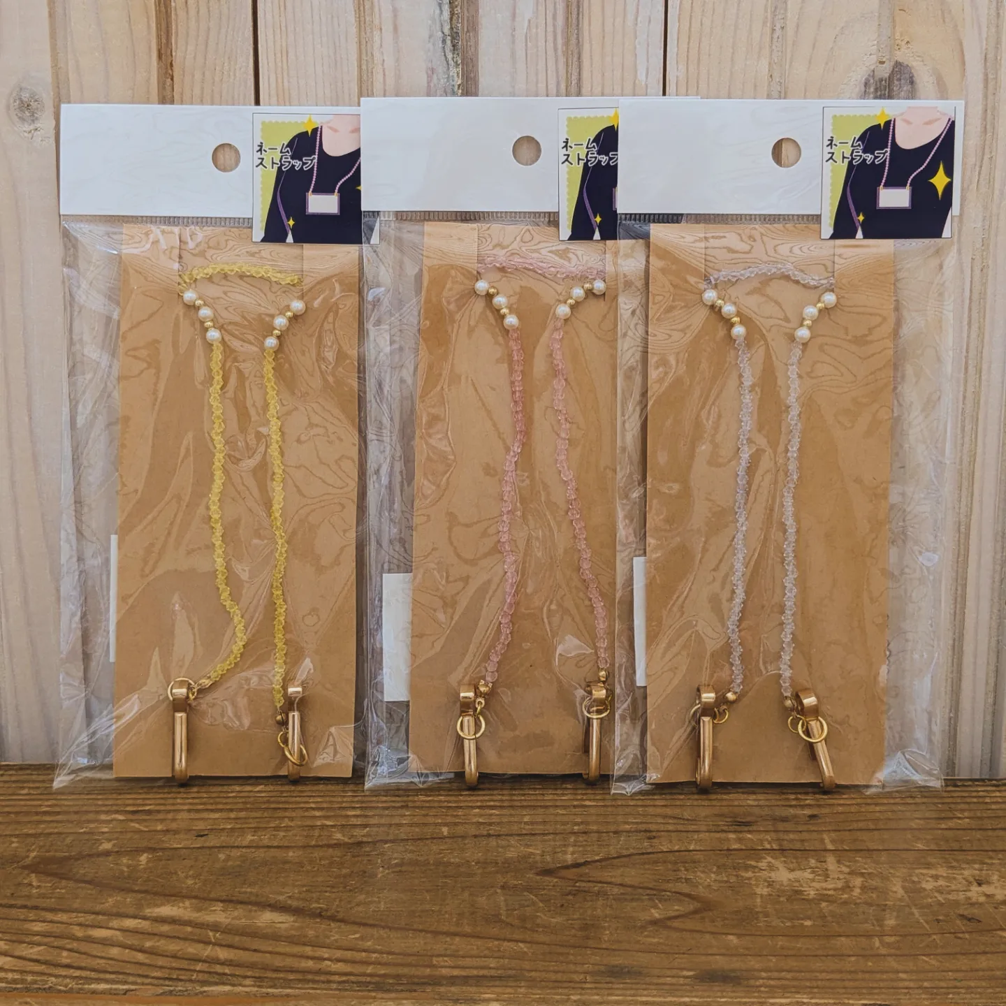 ビーズで作ったネームストラップが再入荷しました。