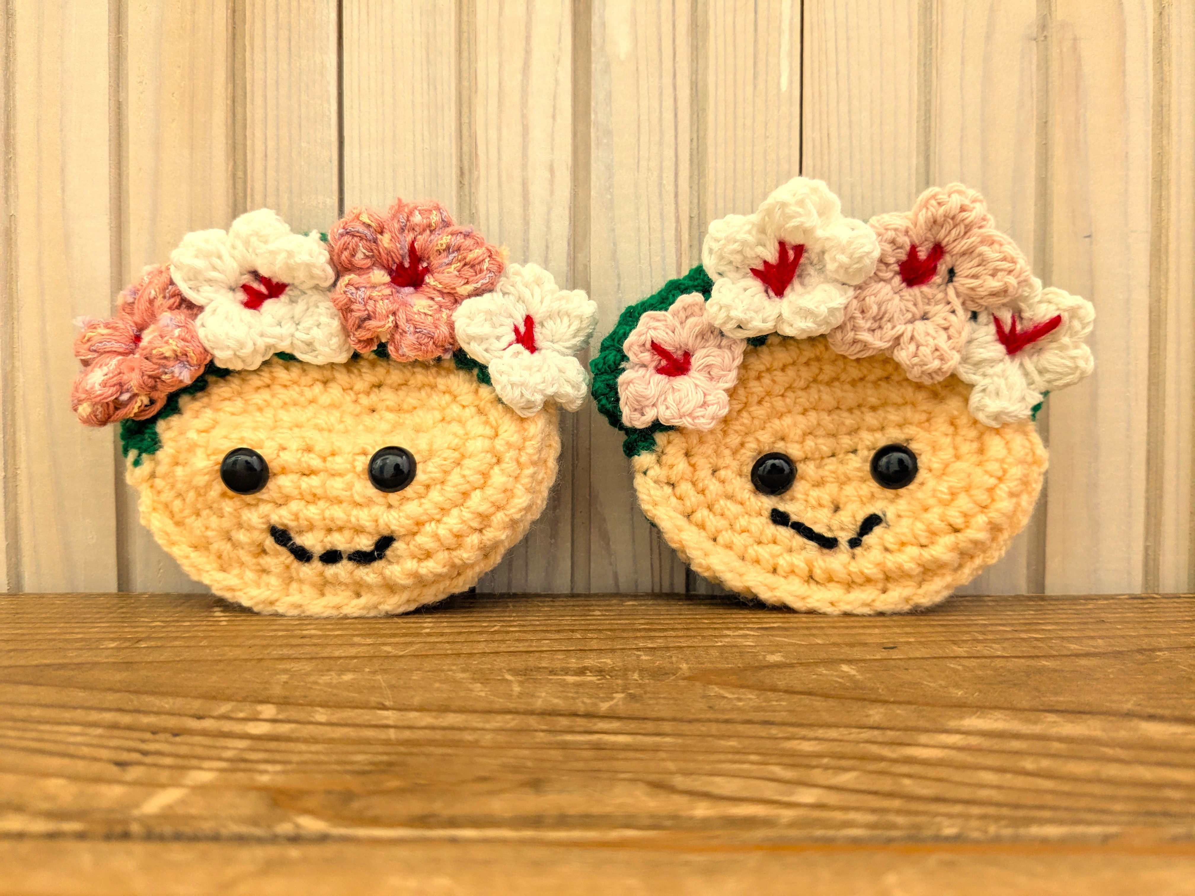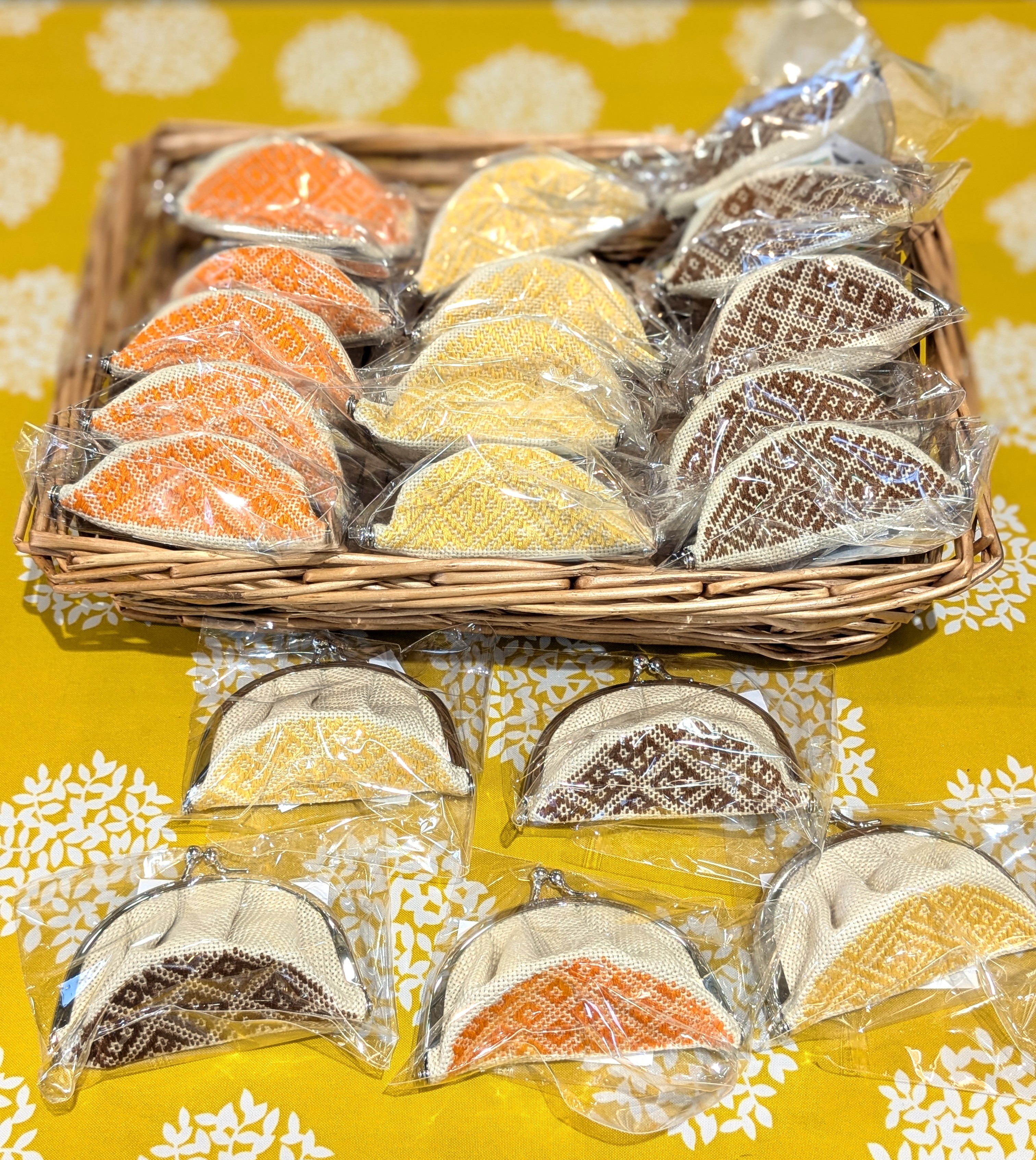 こぎん刺しをあしらった餃子のがま口ポーチです。