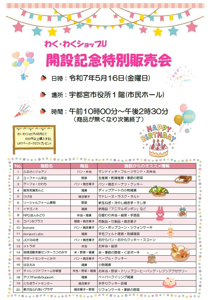 - 障がい者支援施設等製品販売所 『わく・わくショップU』について