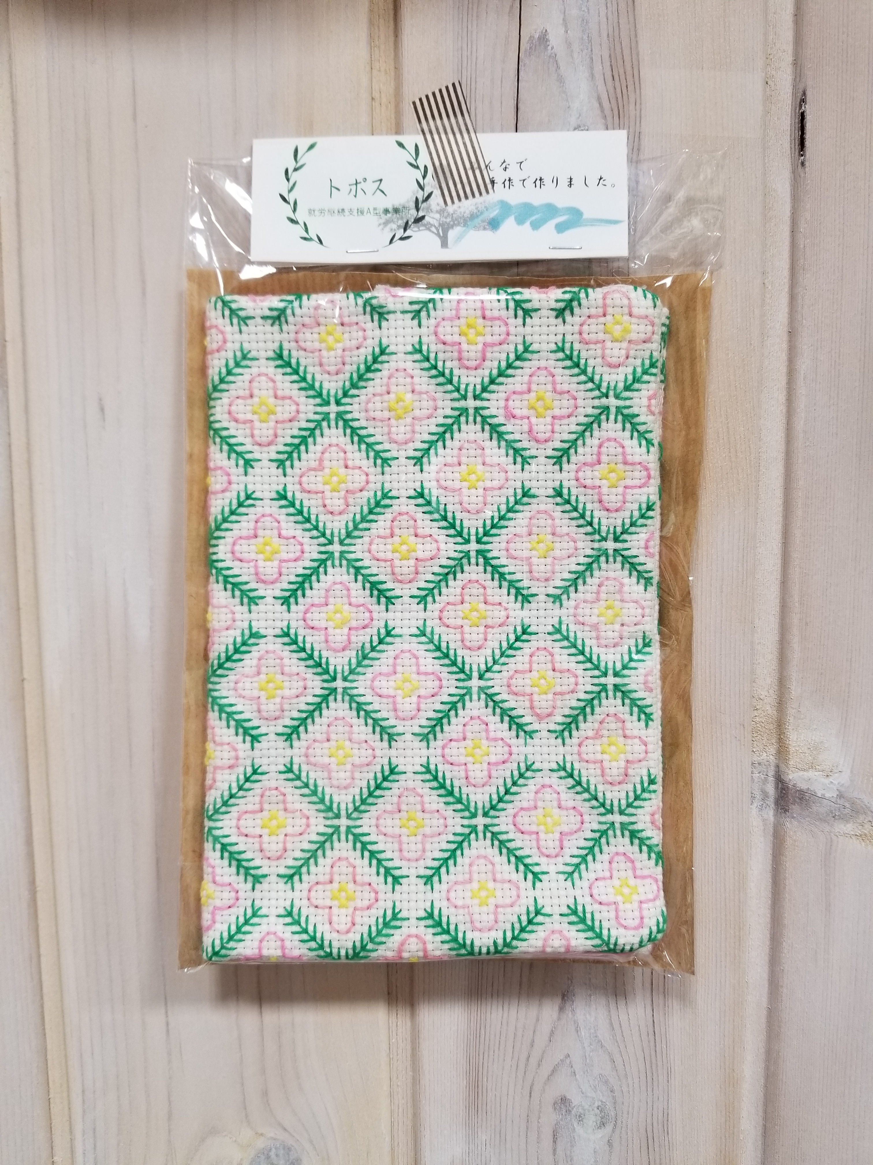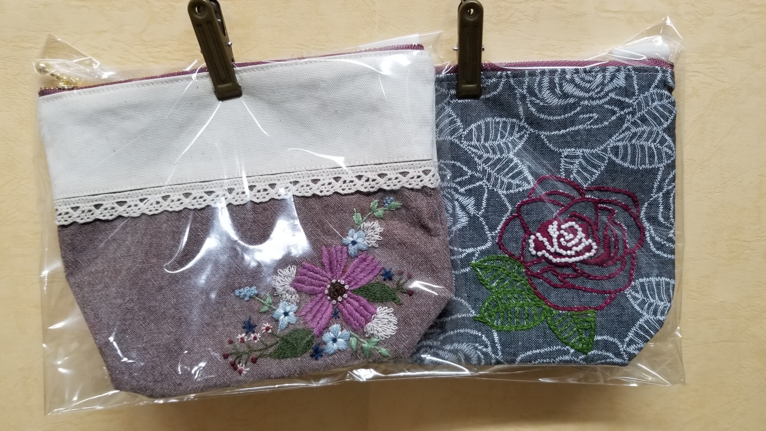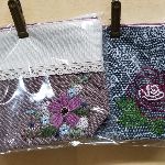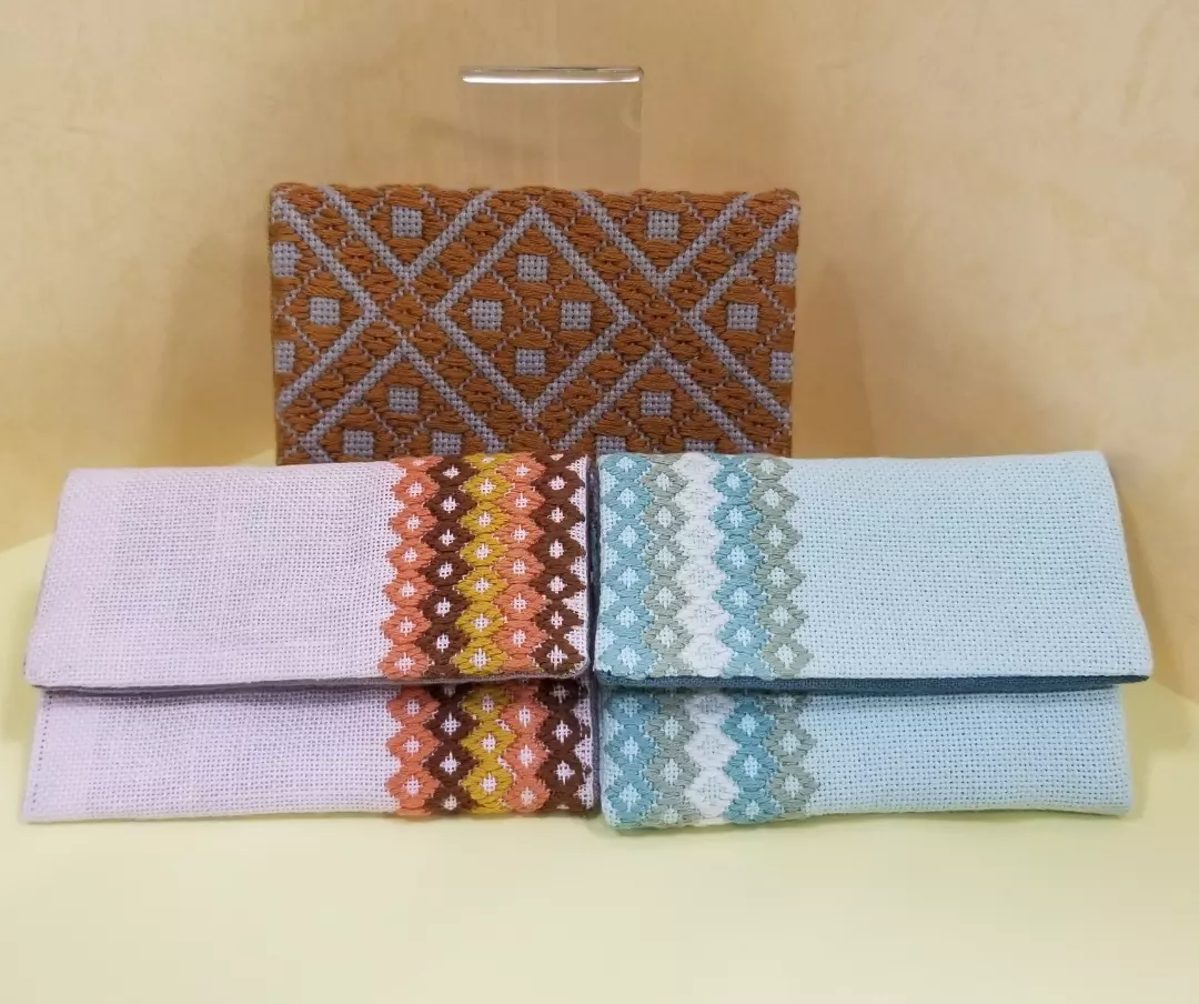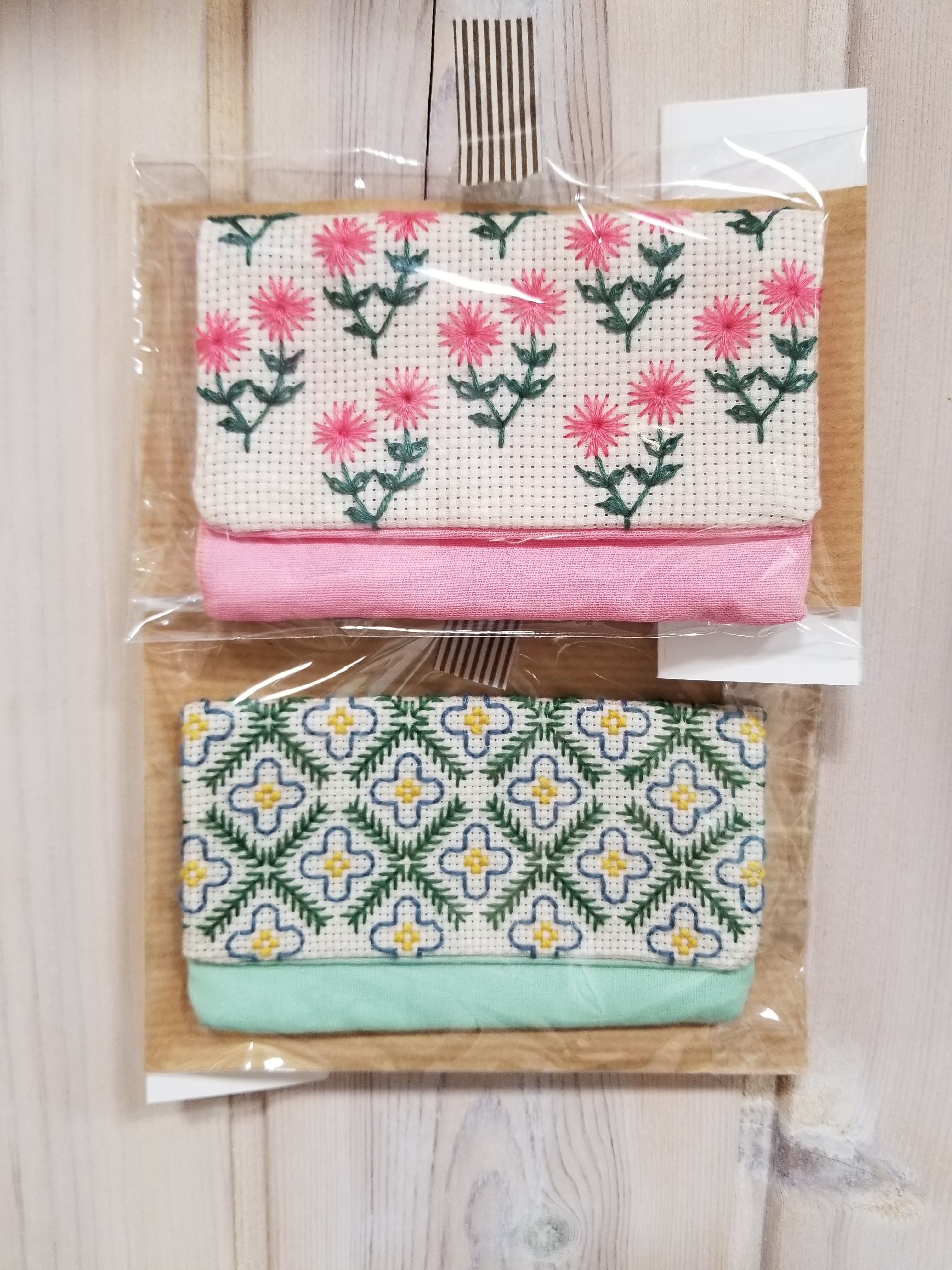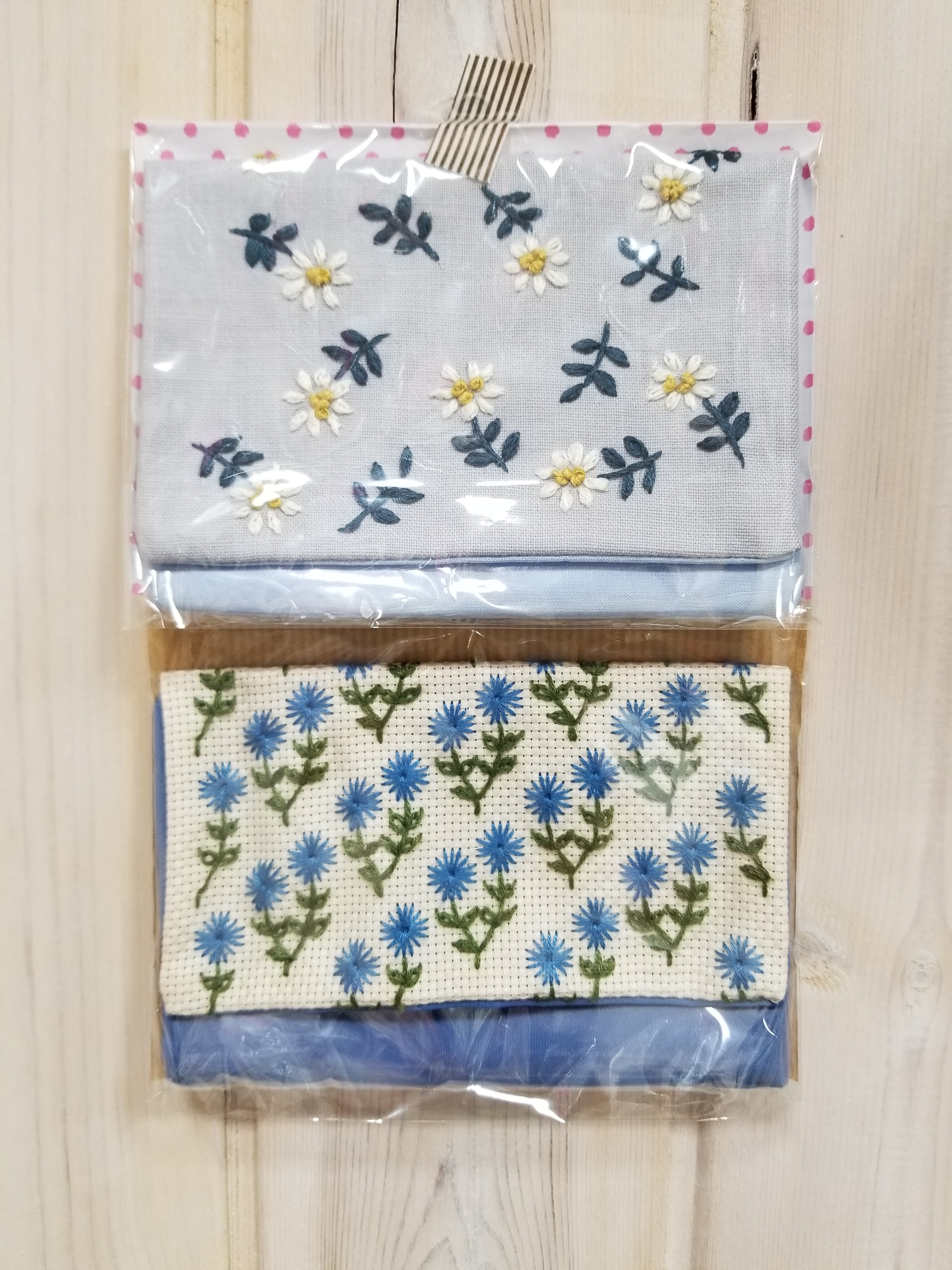 クロスステッチで刺繍しました。カードや通帳もしまえる大きさのものもあります。