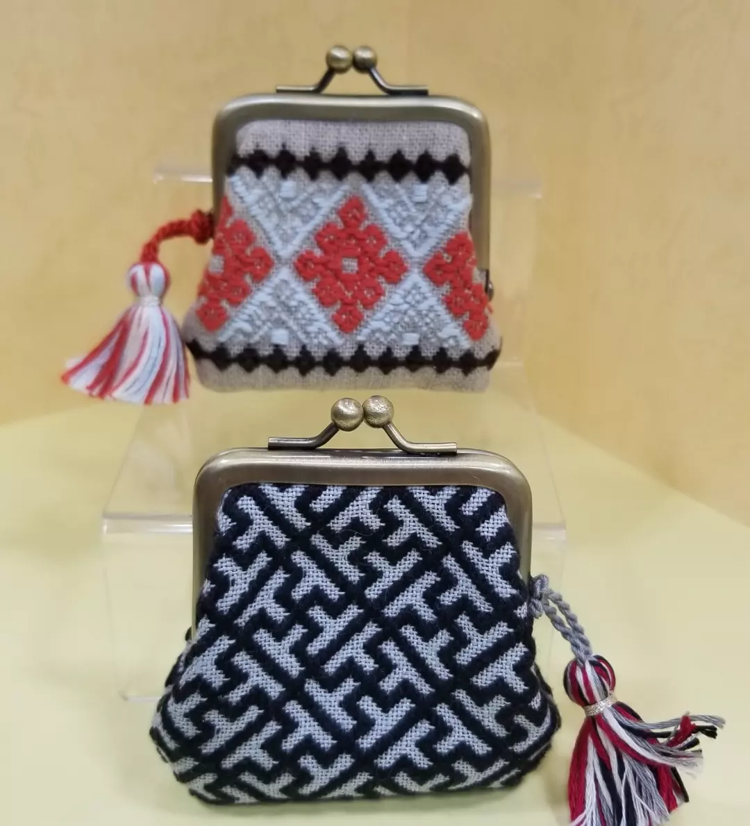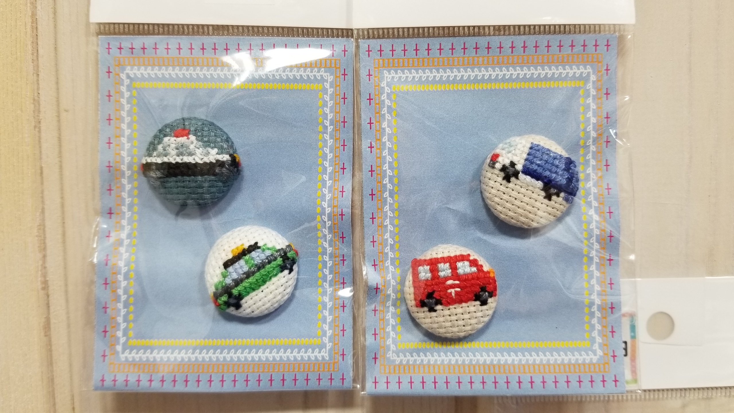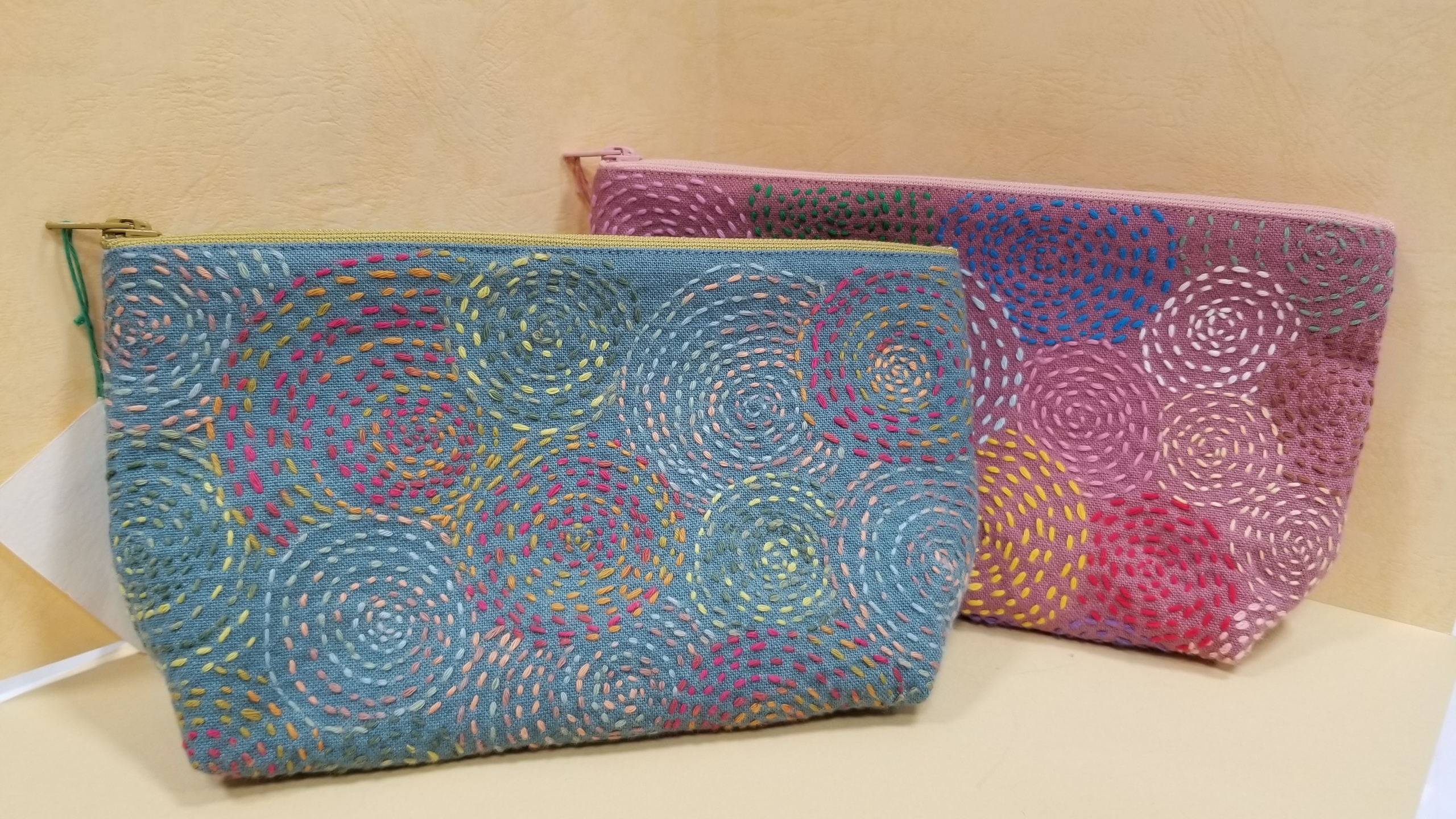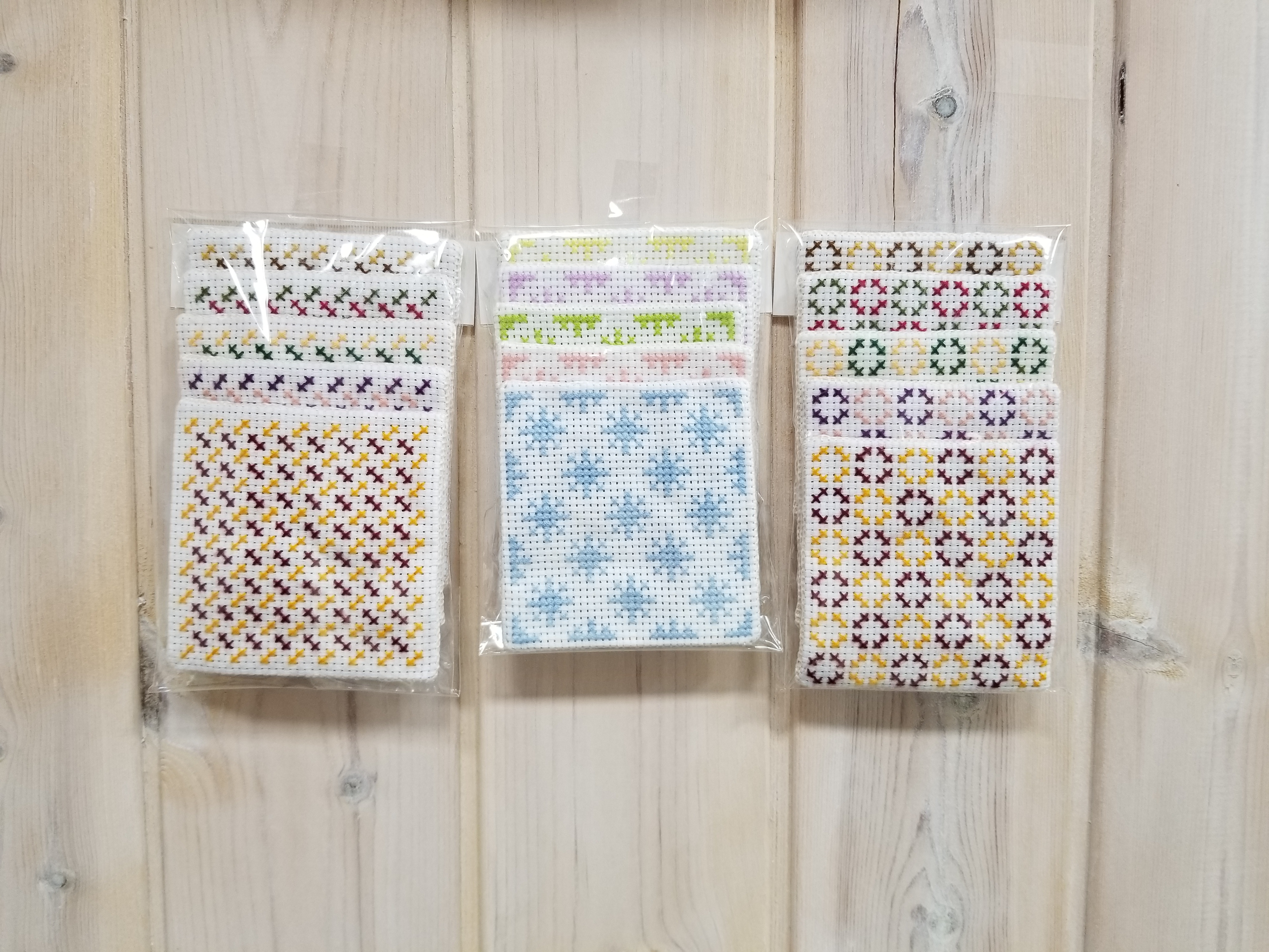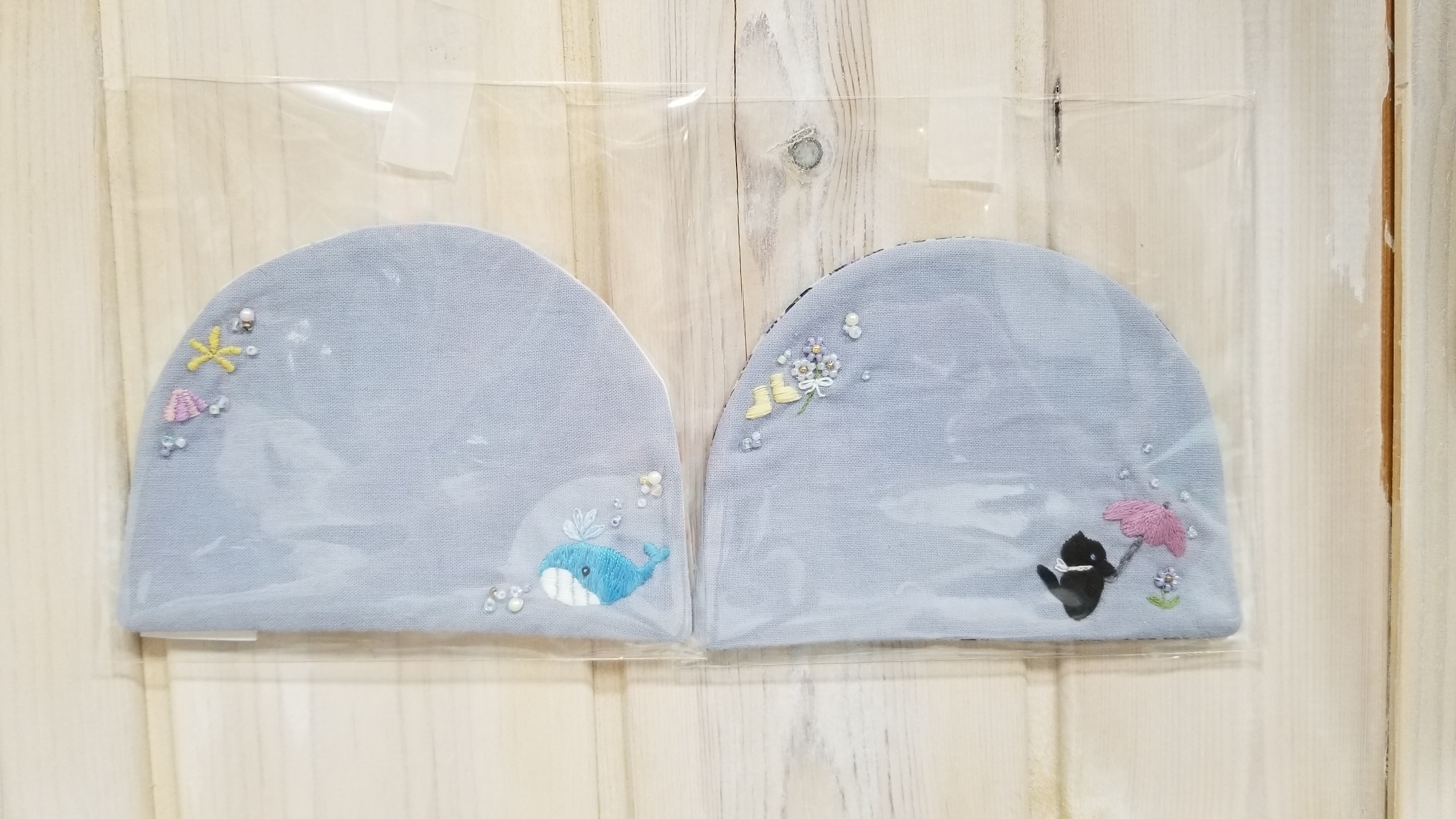 クロスステッチで刺繍しました。カードや通帳もしまえる大きさのものもあります。