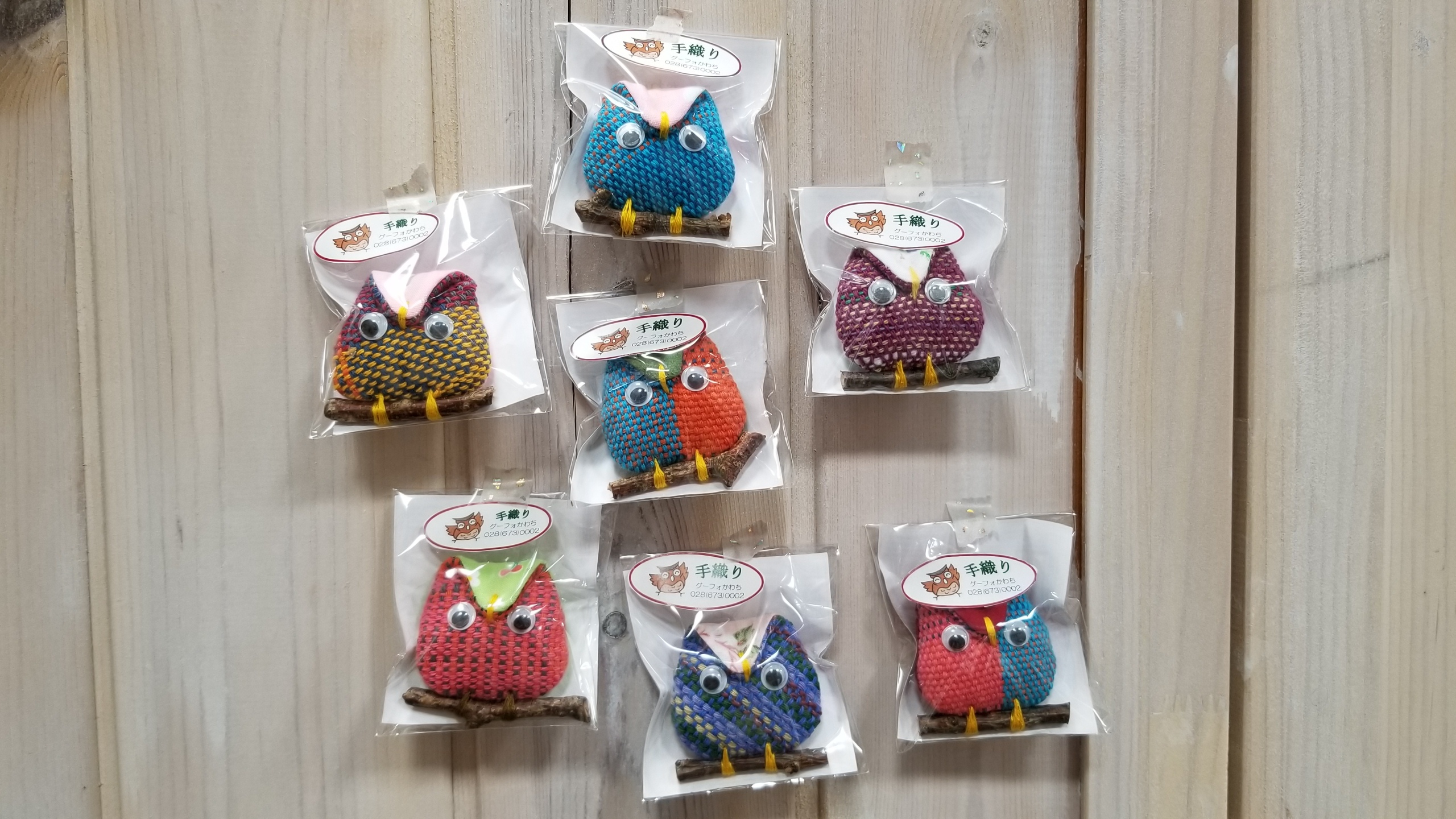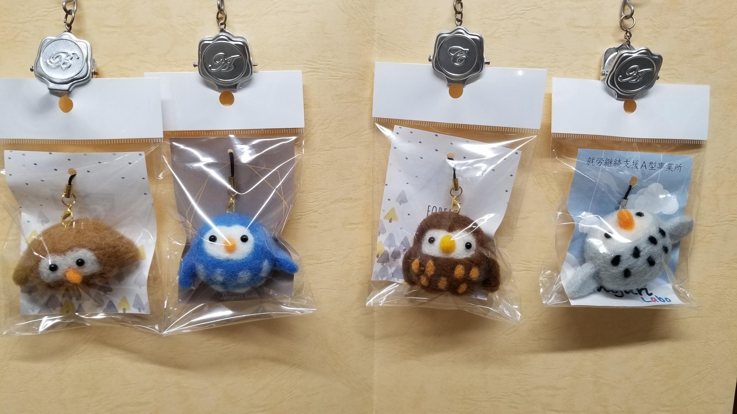幸せを呼ぶフクロウがモチーフの羊毛ストラップです