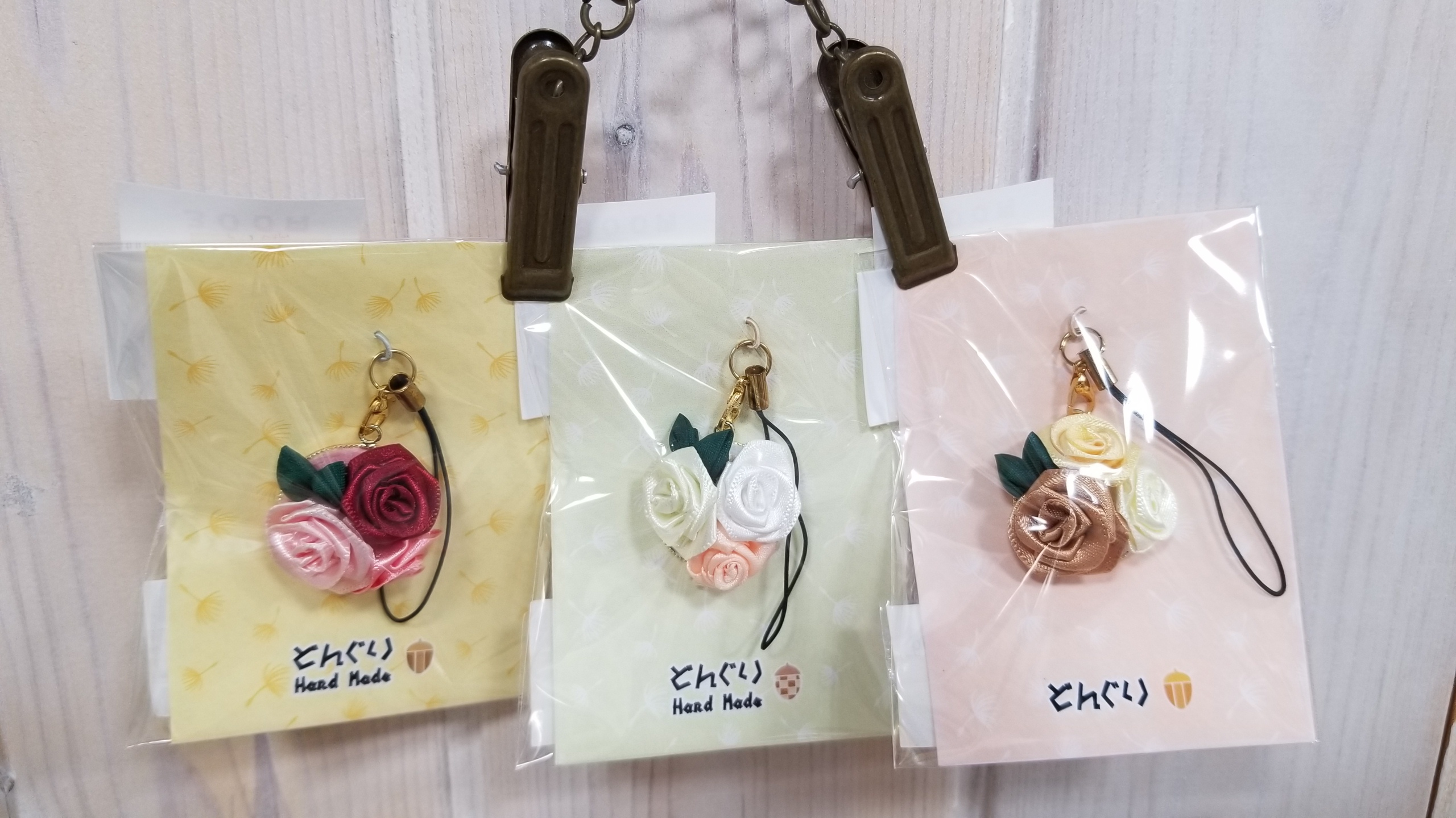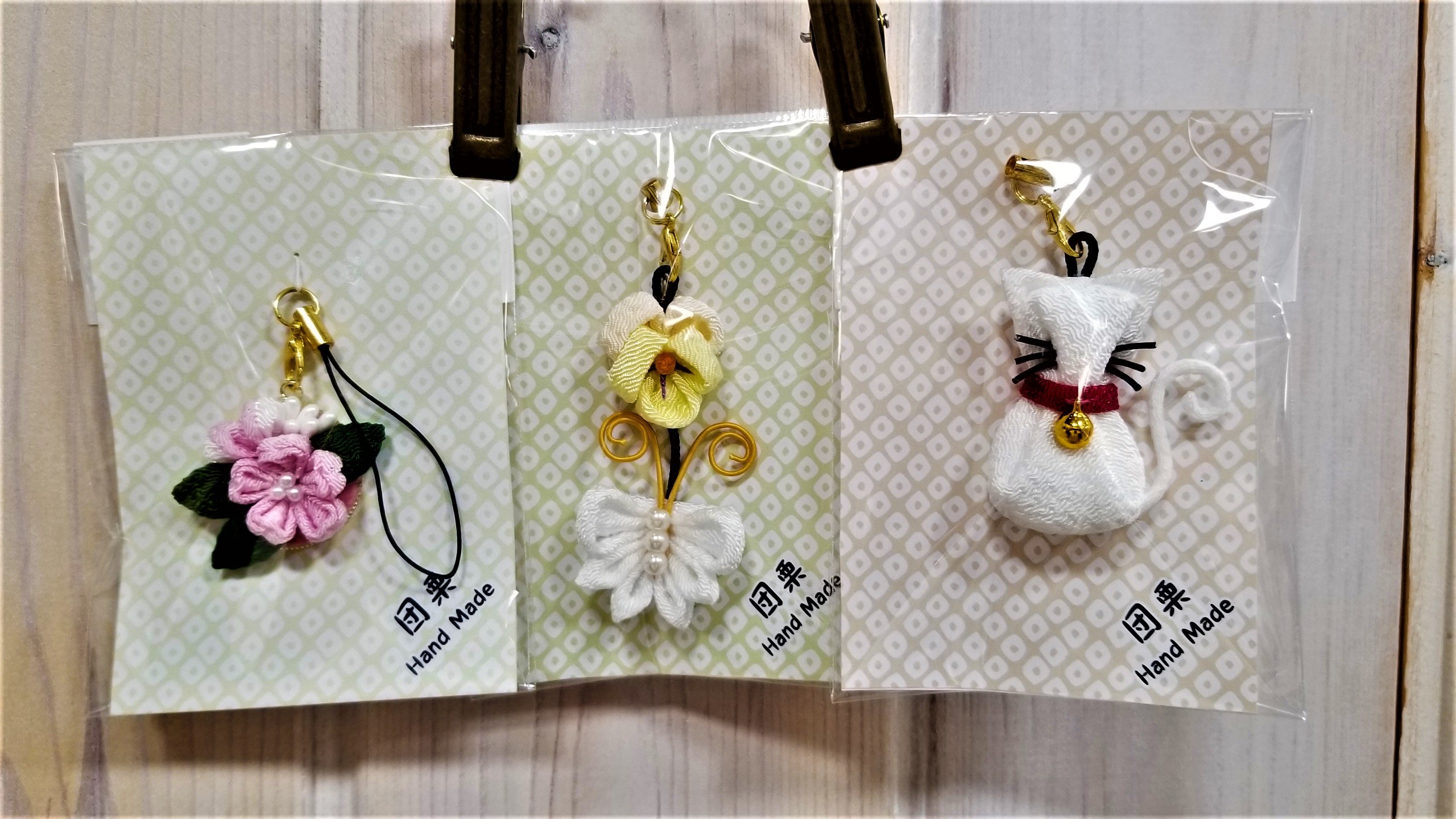 「ちりめんブローチとストラップ」¥