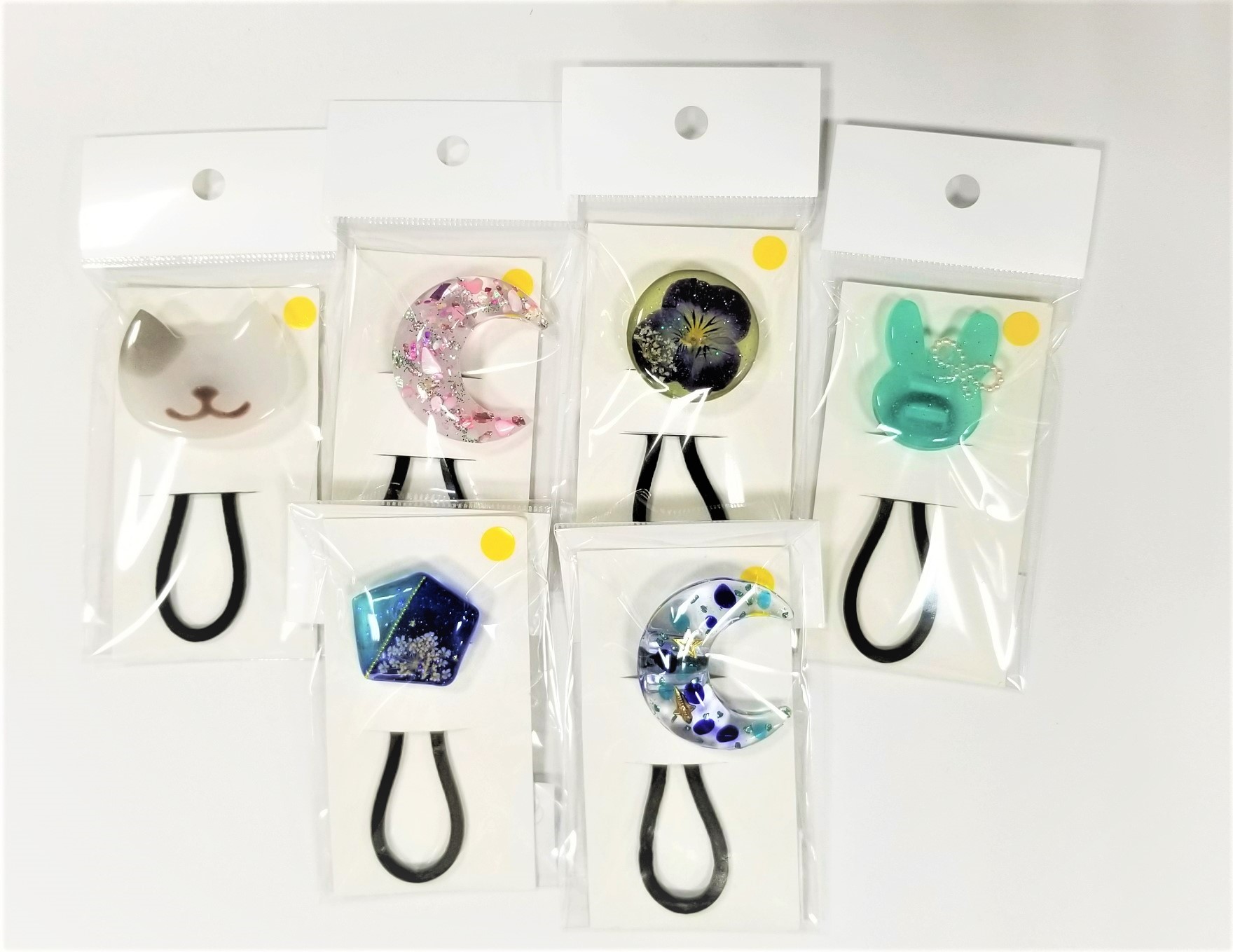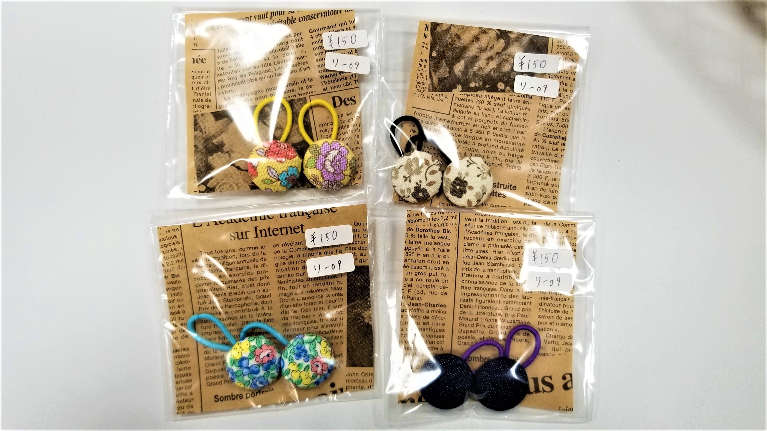 可愛い刺繡が施されたくるみボタンです。ゴムを通せば髪ゴムにもなります