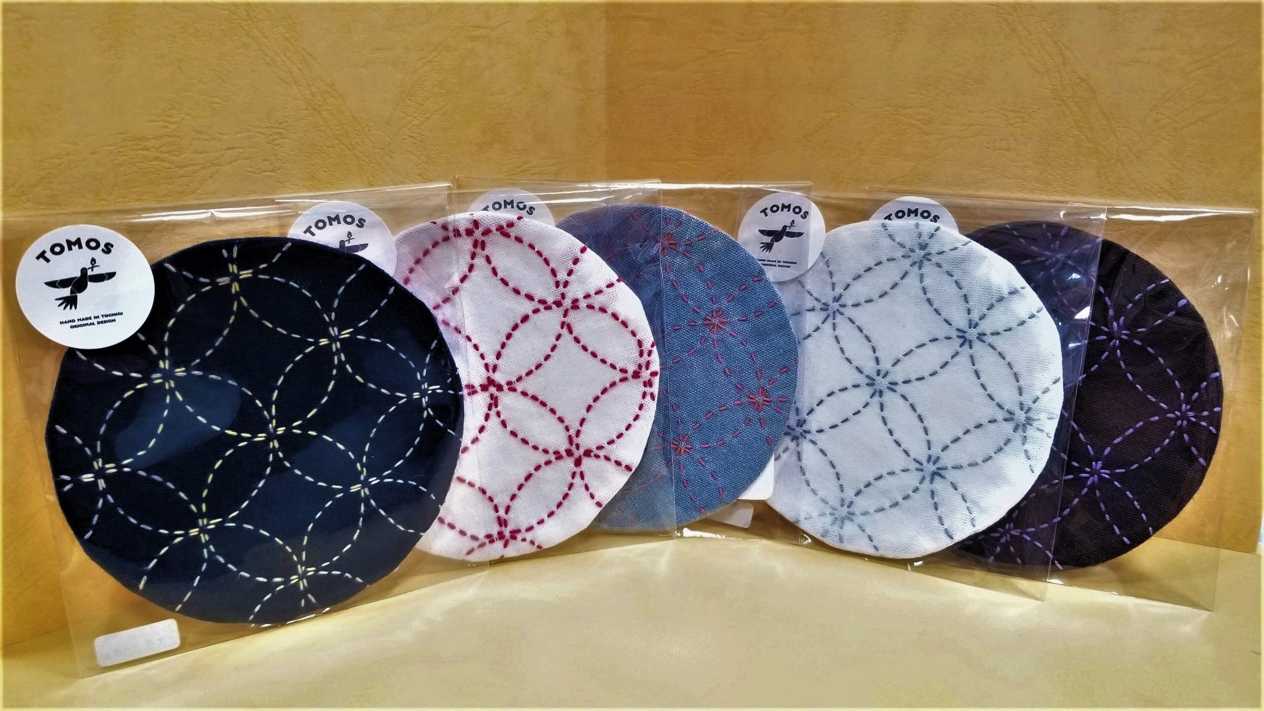 「刺し子コースター(七宝つなぎ)」¥600 …TOMOS company製作