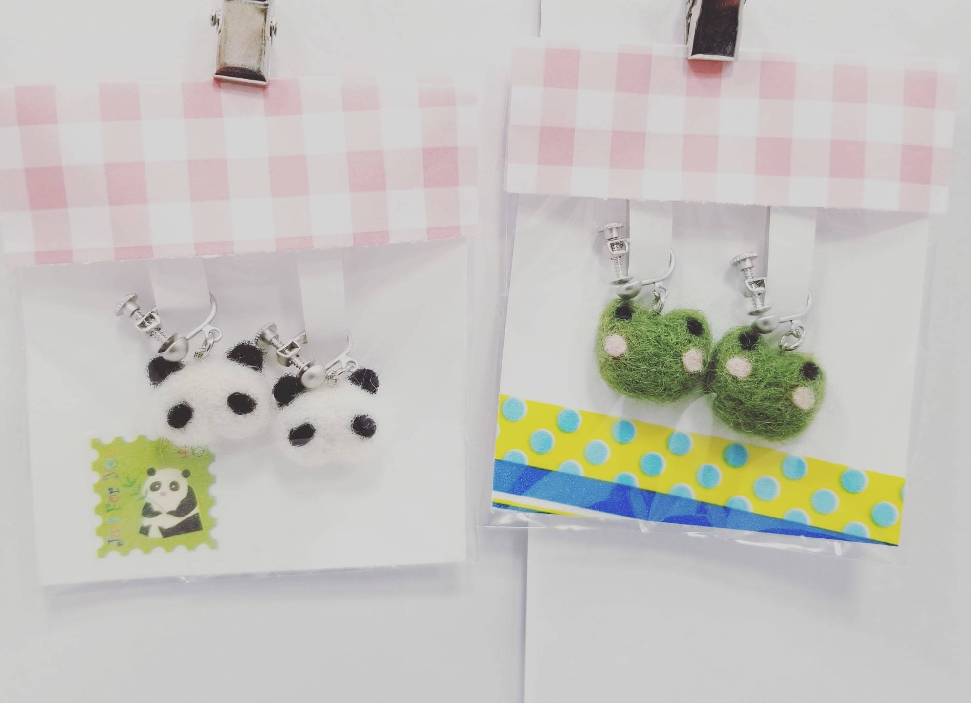 「羊毛・イヤリング(パンダ・カエル)」¥