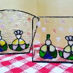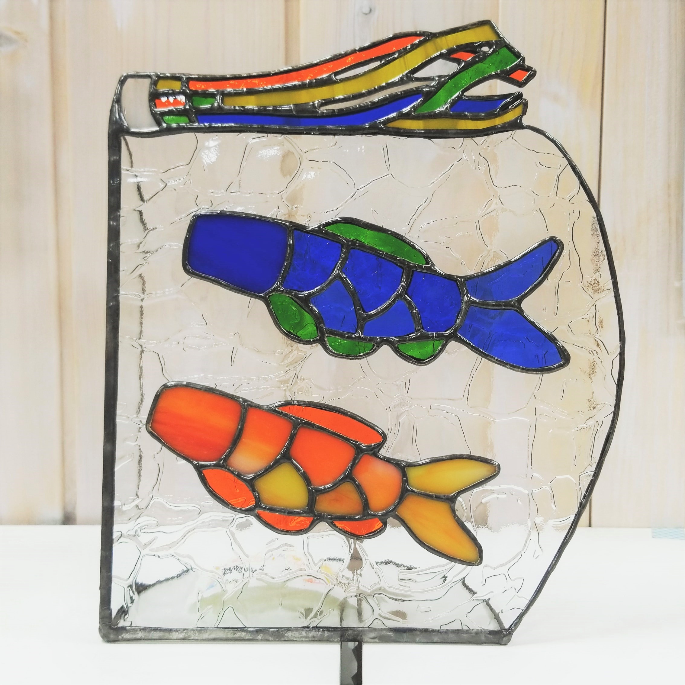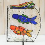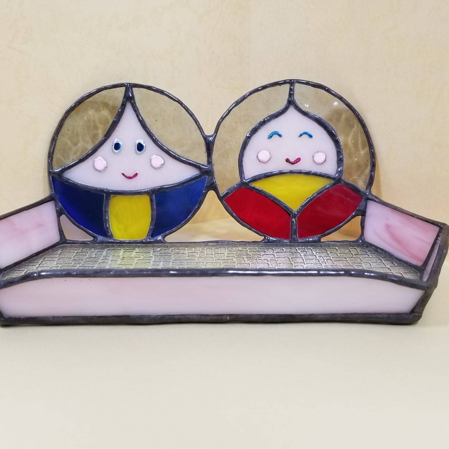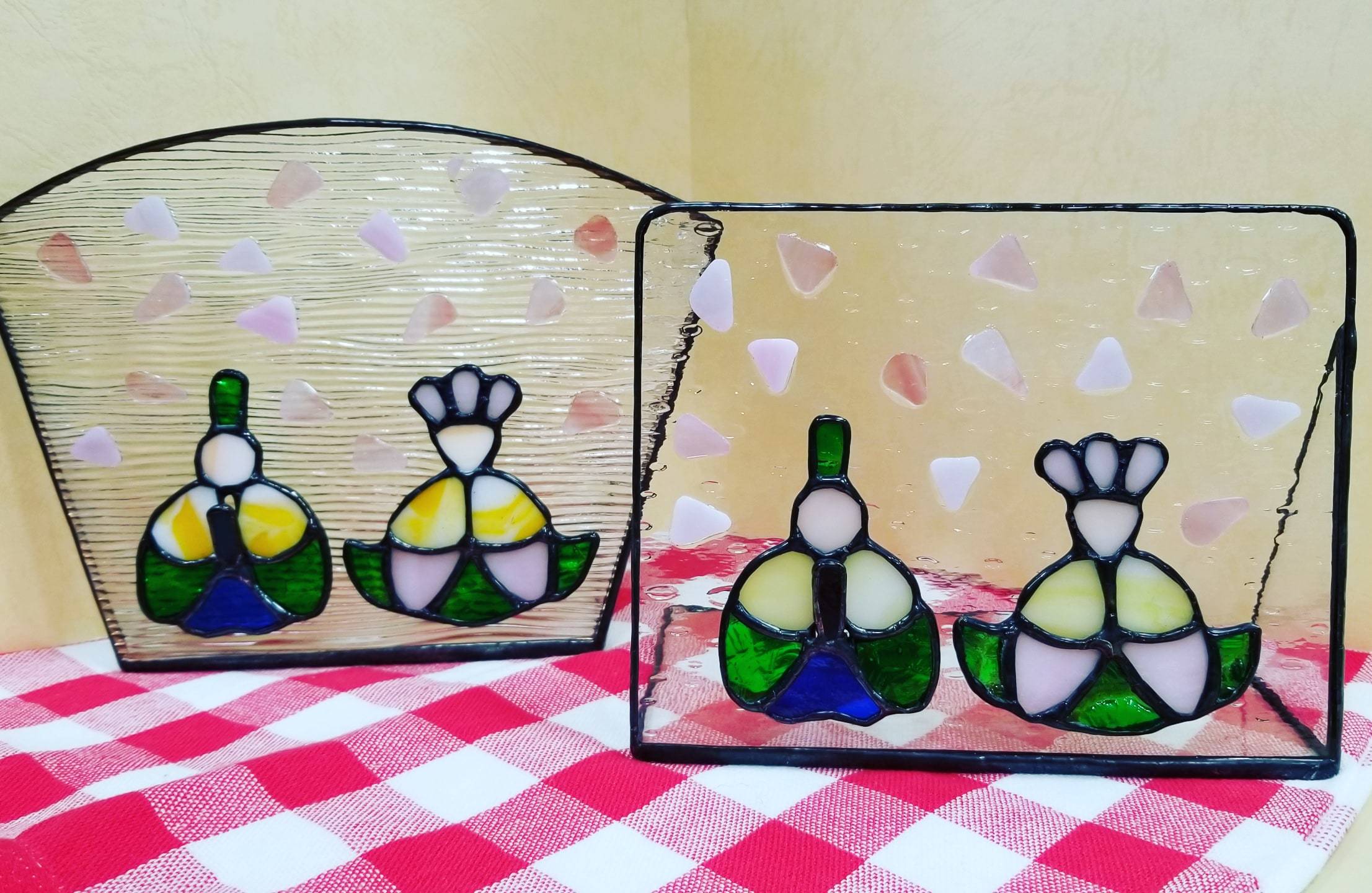 ステンドグラスで作ったトレーにひな祭りが登場です。