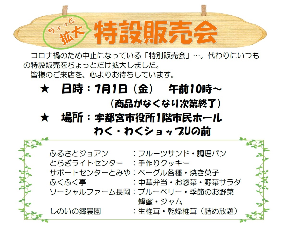 - 障がい者支援施設等製品販売所 『わく・わくショップU』について