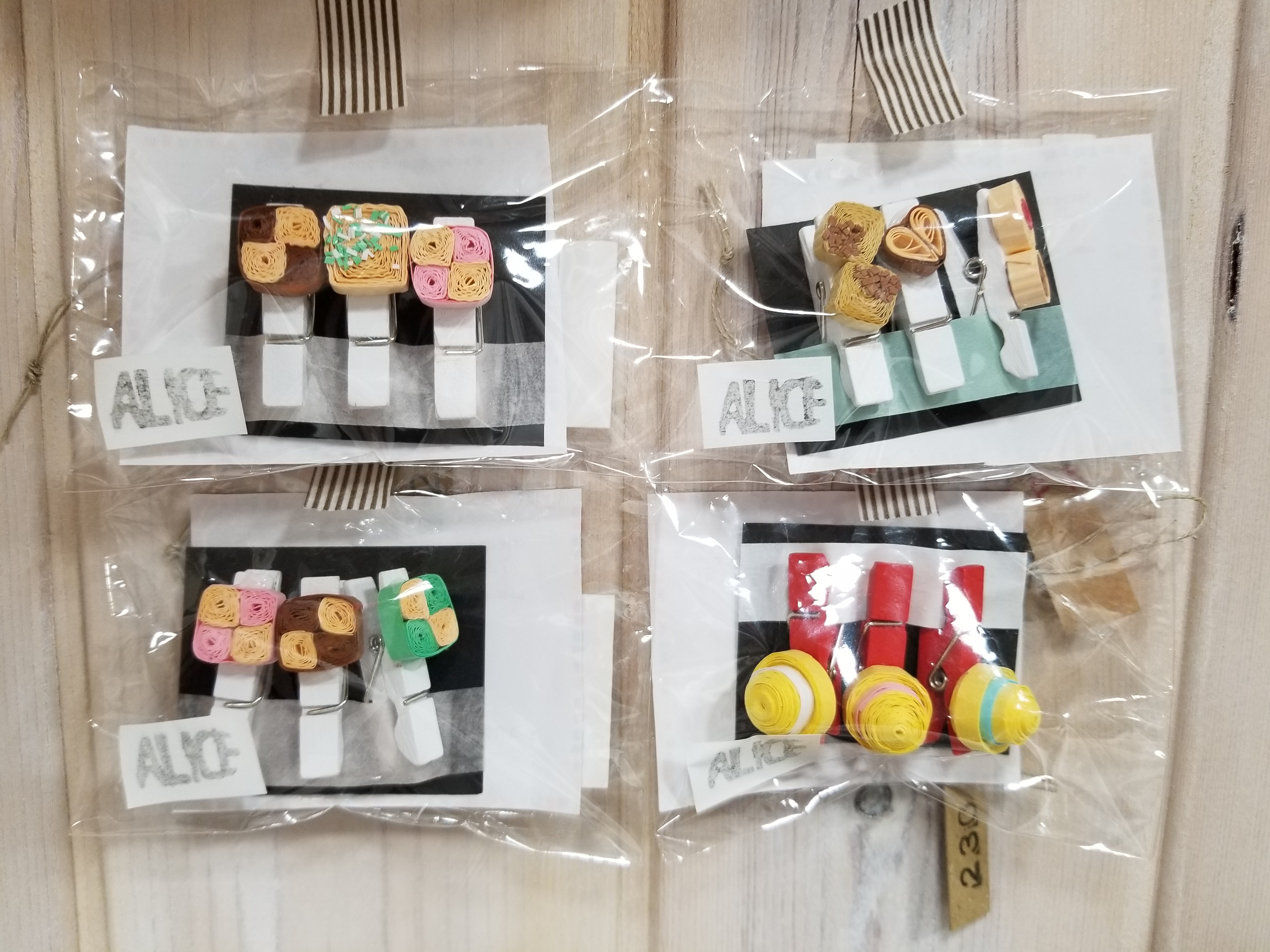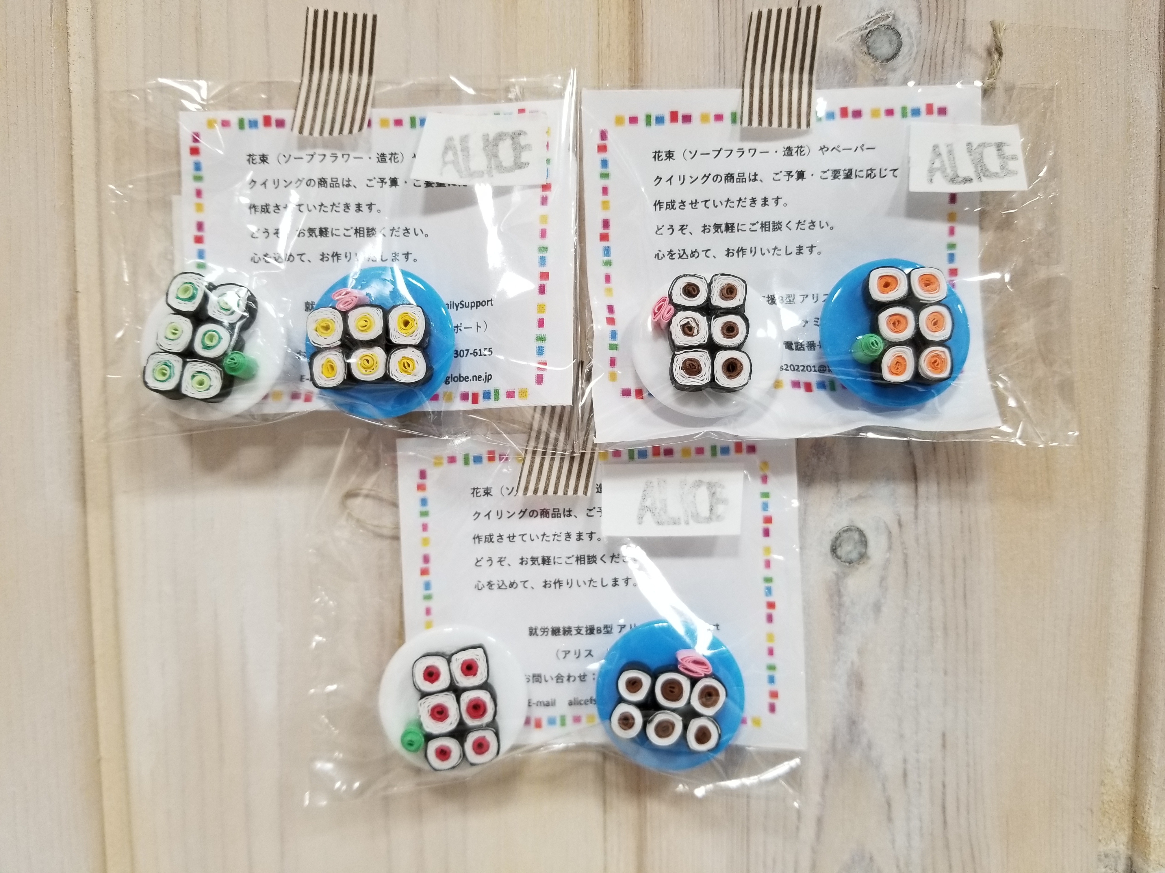 細巻き寿司をペーパークイリングで作りました。ワサビやショウガも付いています。
