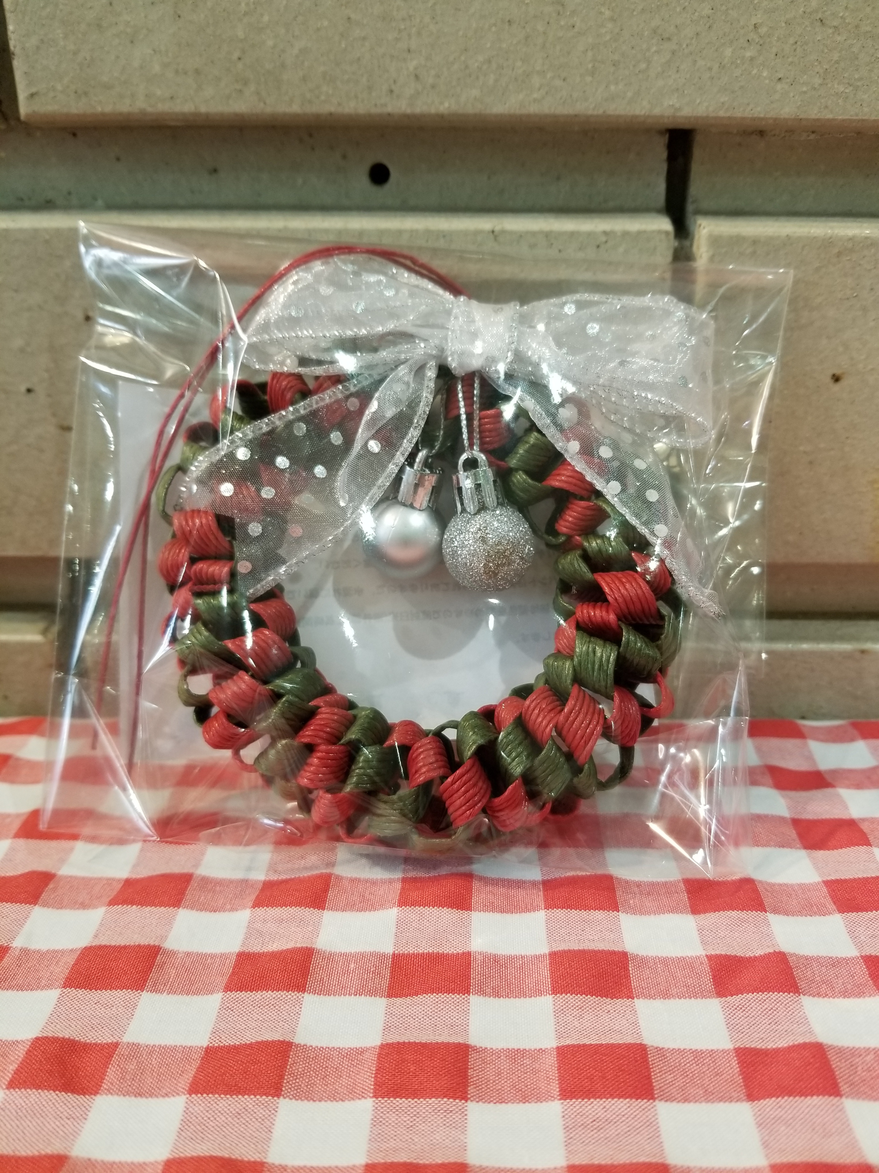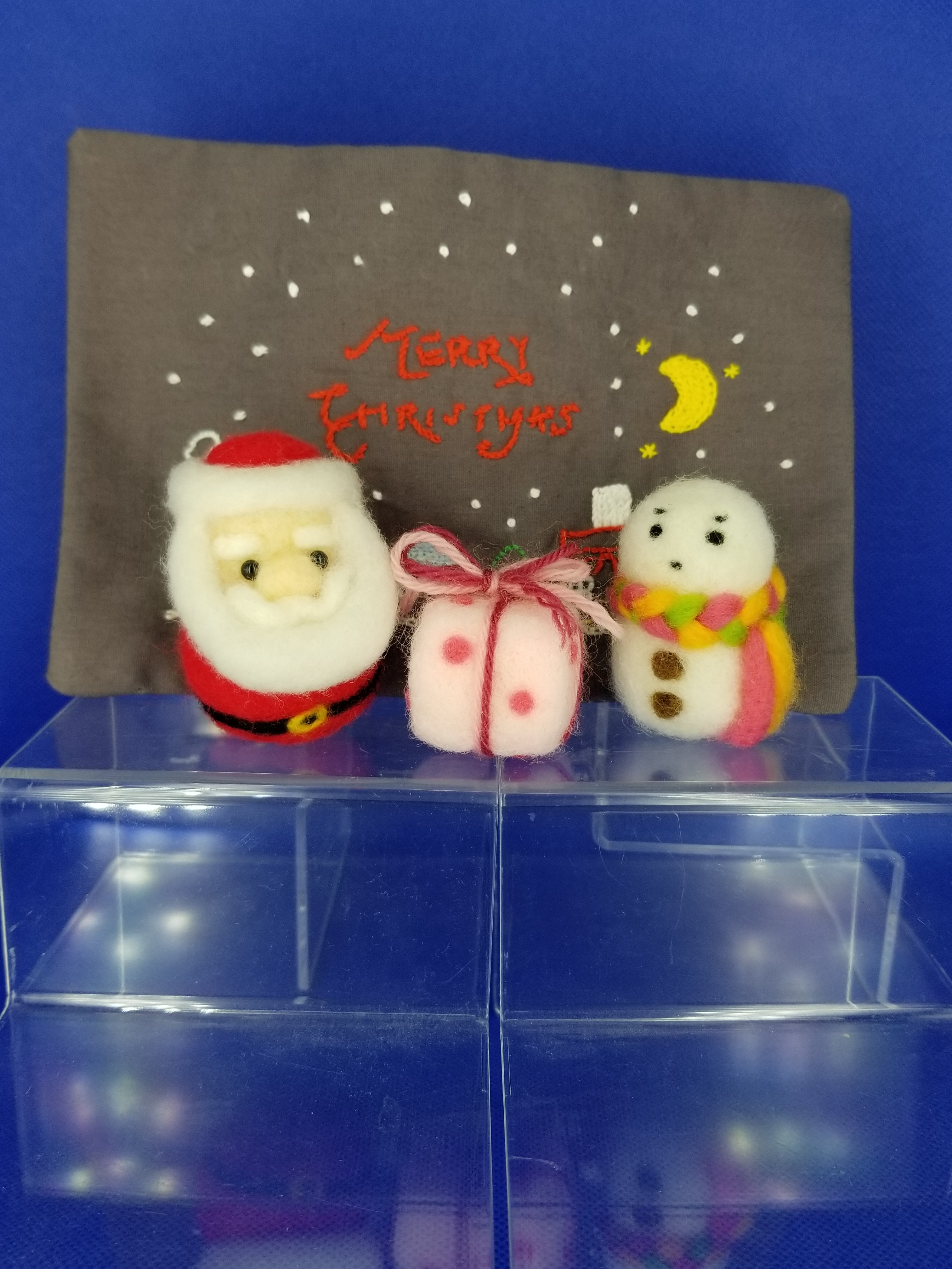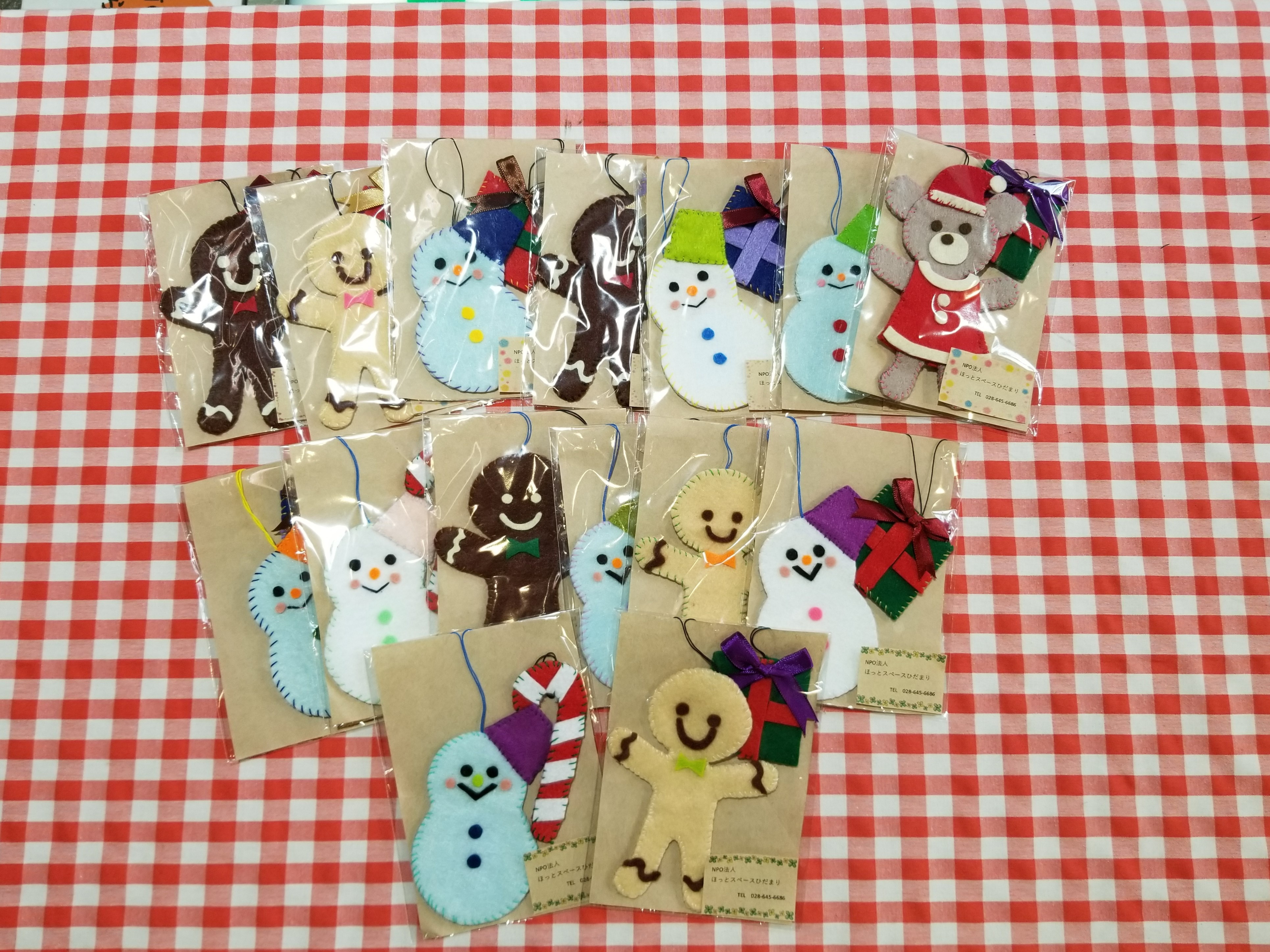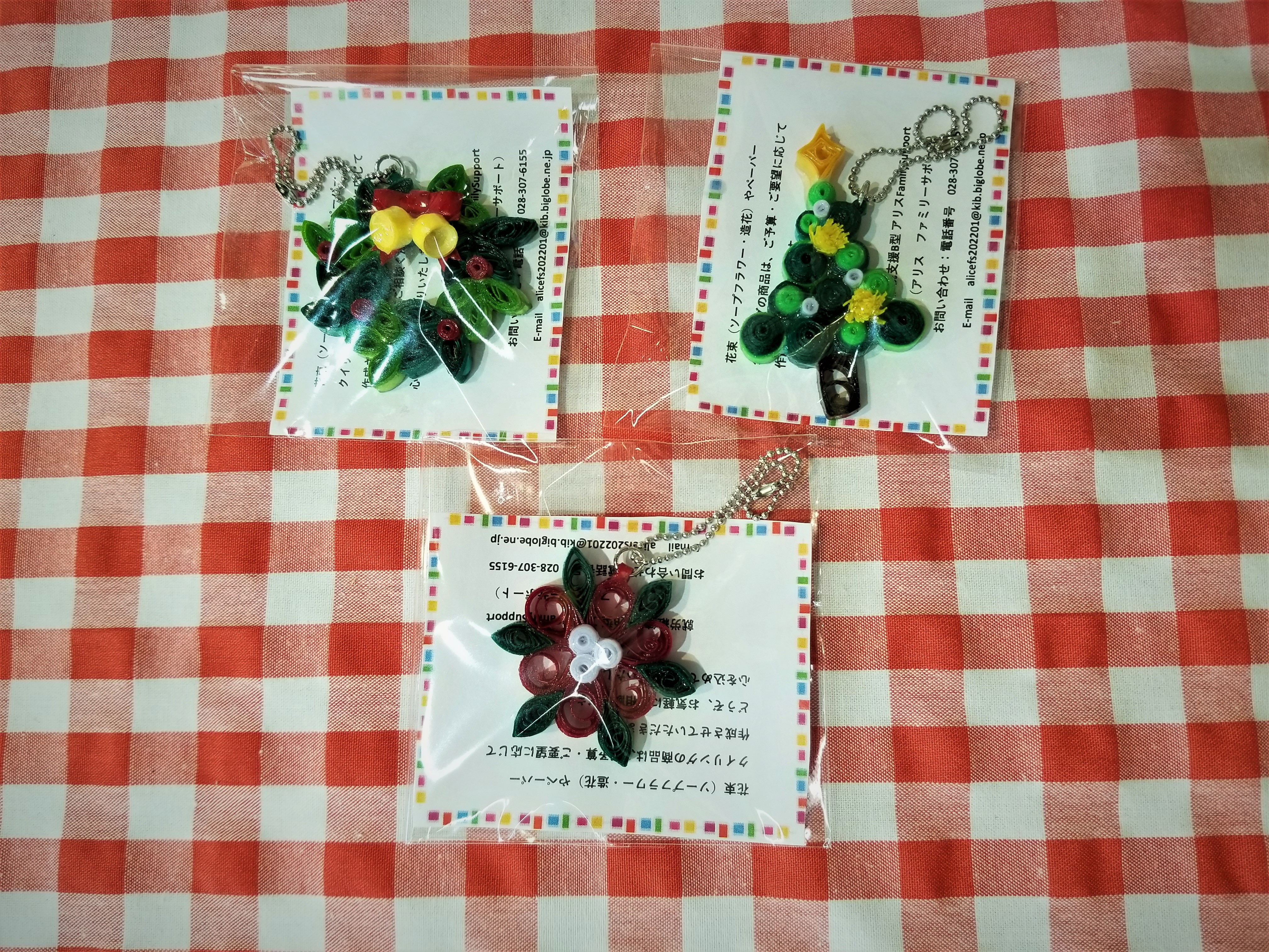クラフトバンドでクリスマスモチーフを作ってあります。