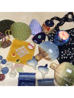 宇都宮の施設では、様々な布でバッグや小物入れやコースター、エプロンなどを作っています。また、粘土で箸置きや小さな皿なども手練りで作っています。